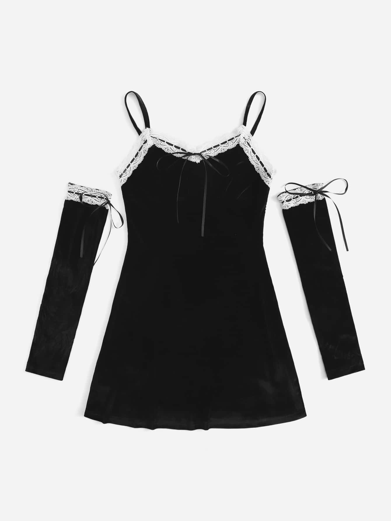Contrast Lace Velvet Dress With A Pair Oversleeve