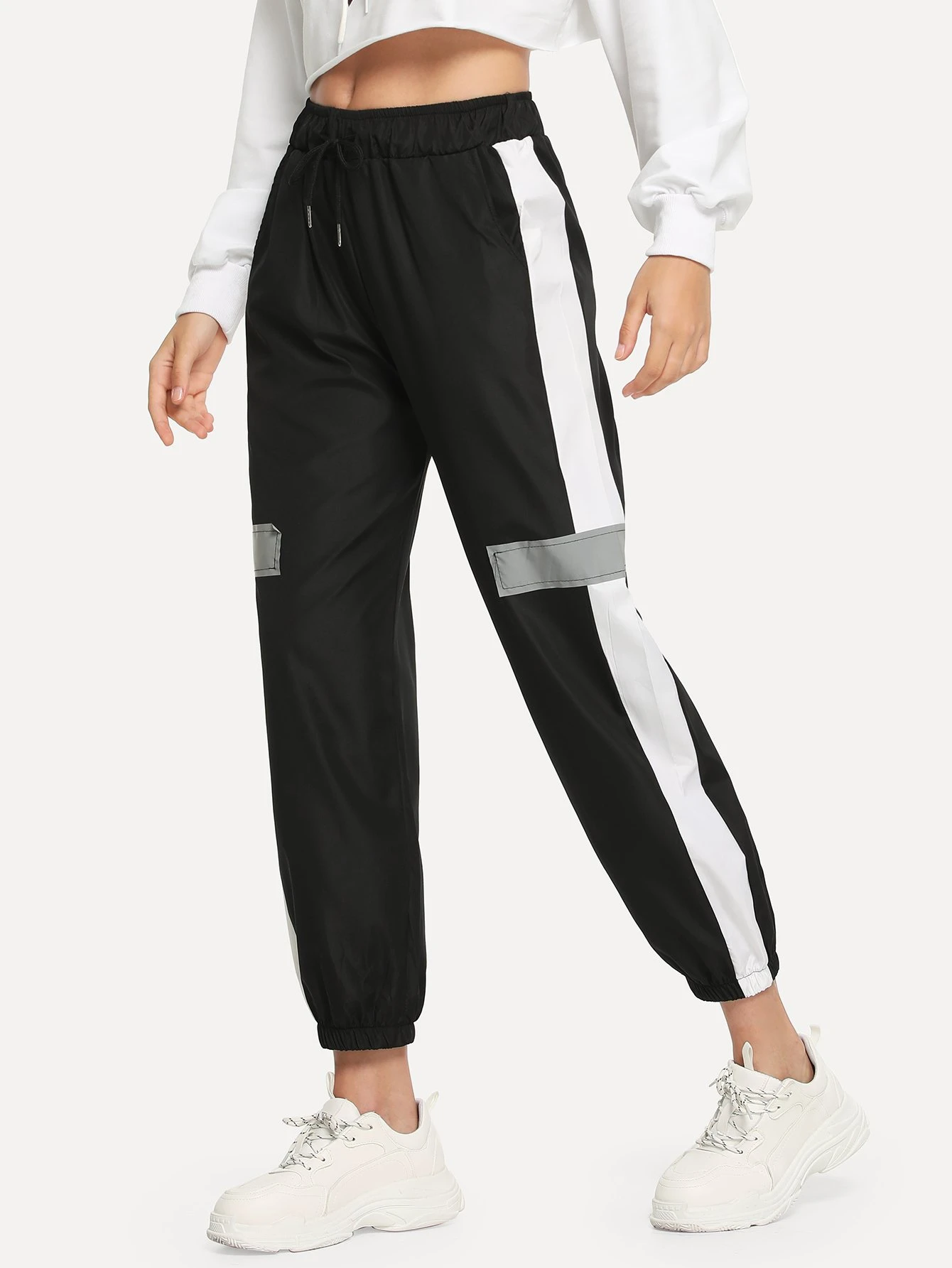 Contrast Panel Side Drawstring Waist Windbreaker Pants