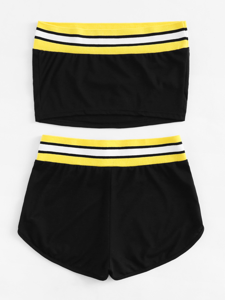 Contrast Stripe Trim Bandeau Top With Dolphin Shorts