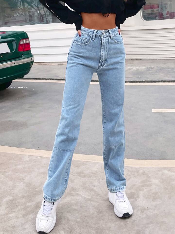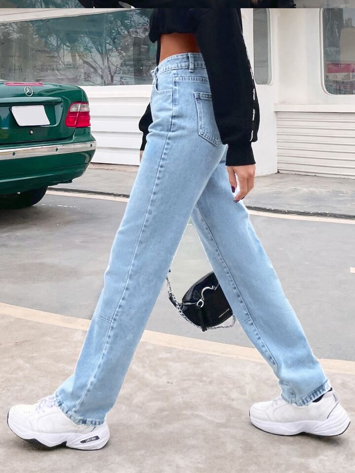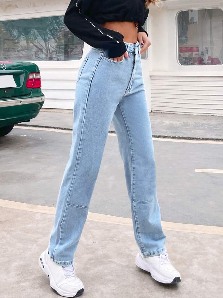 Contrast Top-Stitching Straight Leg Jeans Winter Casual