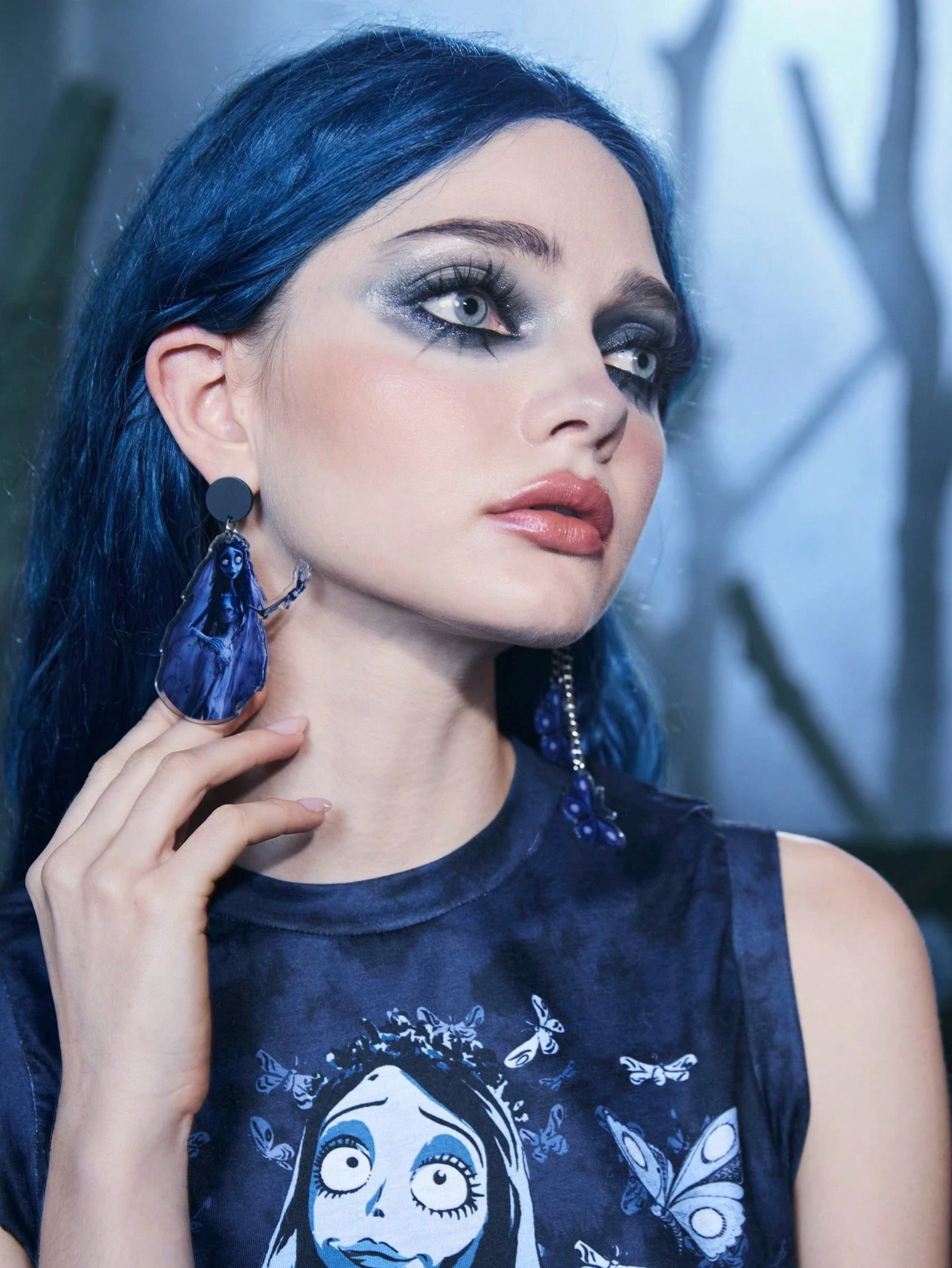 Corpse Bride | ROMWE 1pair Funky Asymmetric Zombie Bride & Butterfly Drop Earrings For Women