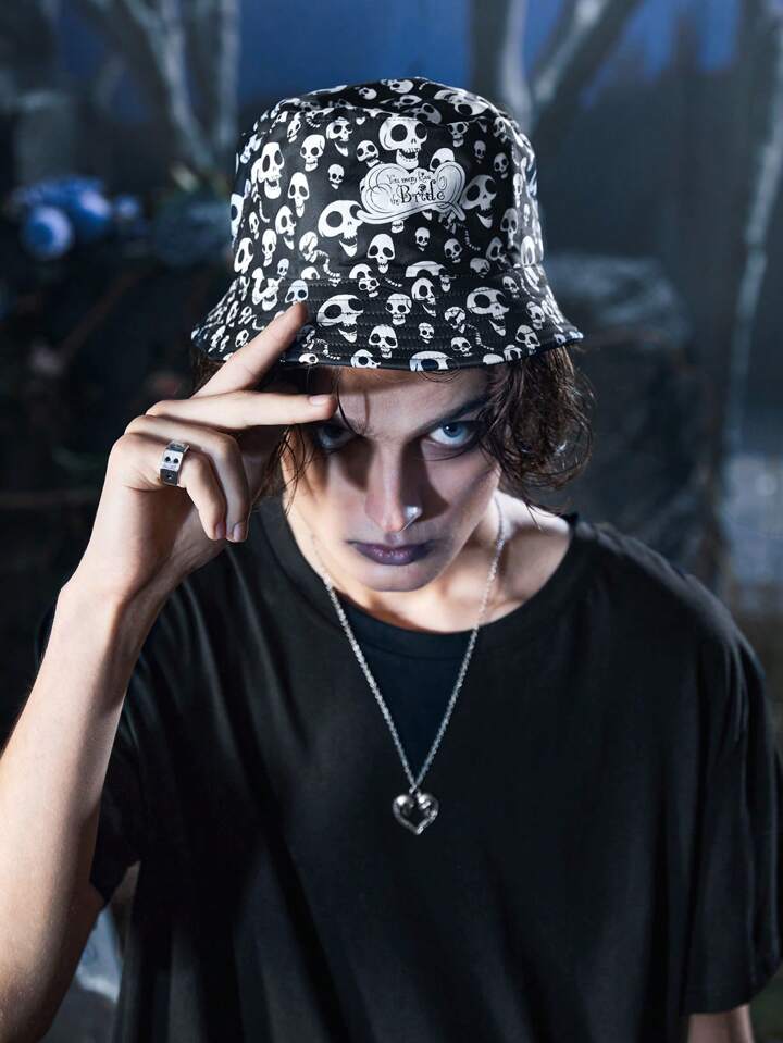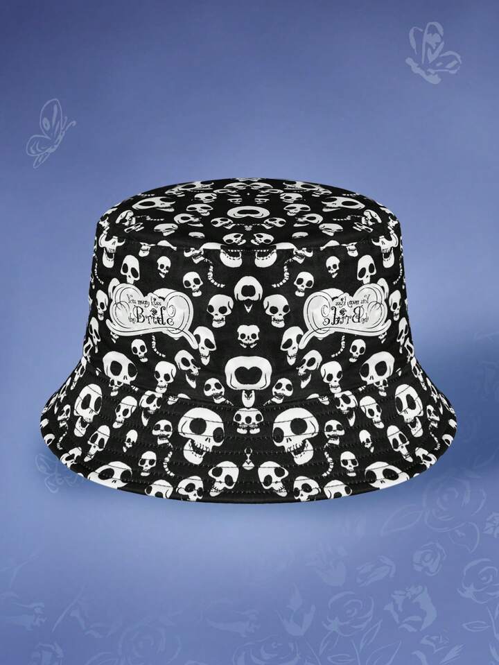 Corpse Bride | ROMWE 1pc Women Skull & Letter Graphic Fashionable Bucket Hat For Outdoor Travel