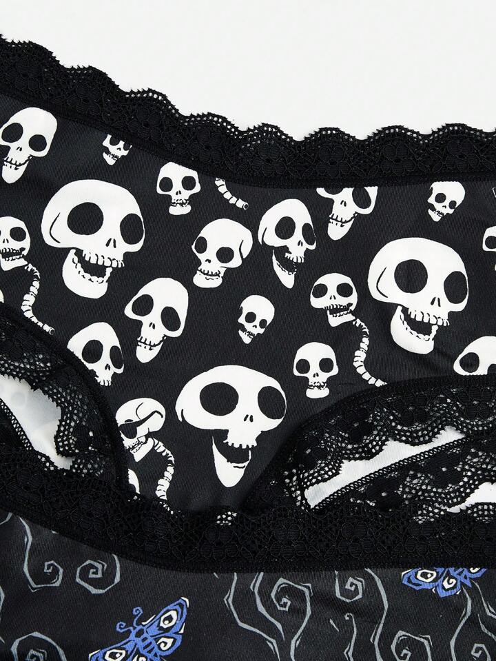 Corpse Bride | ROMWE 3pack Skull Print Contrast Lace Panty Set