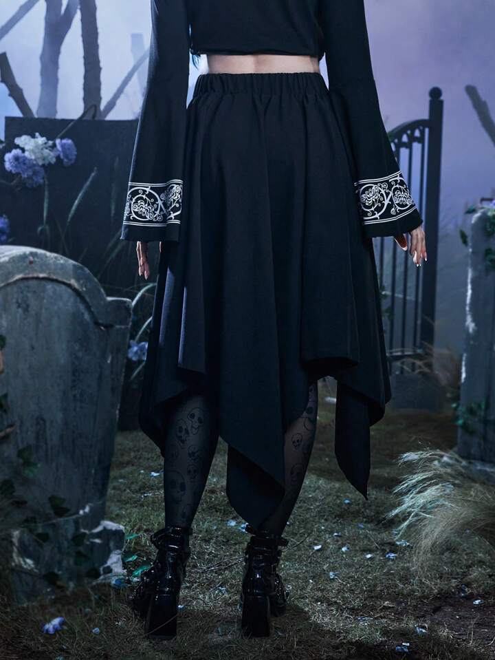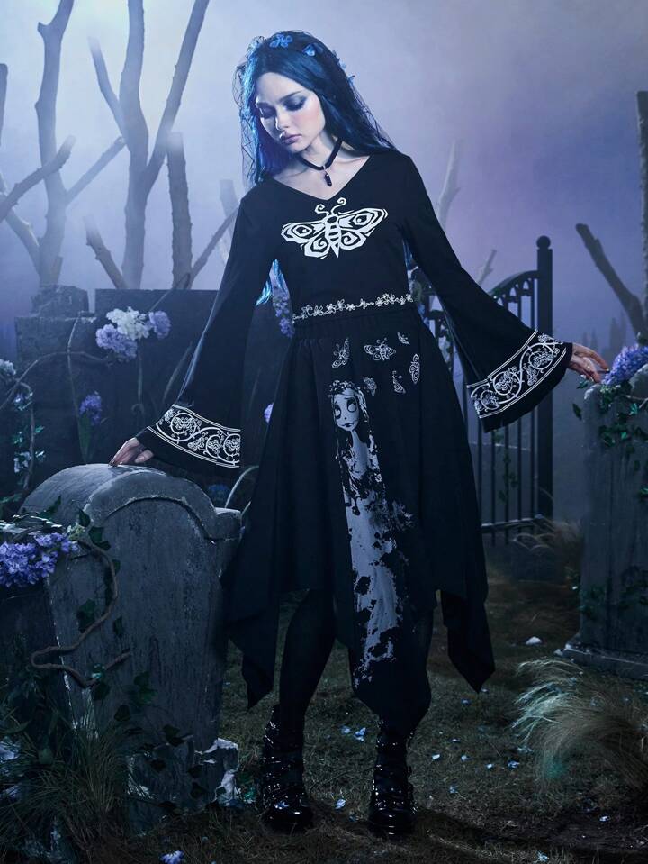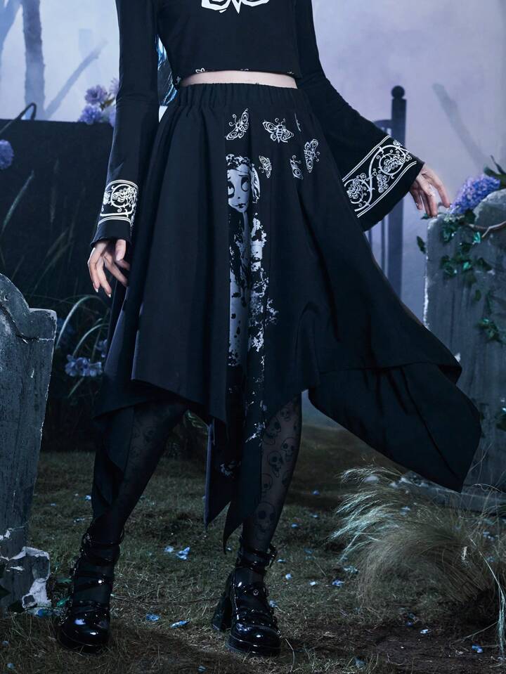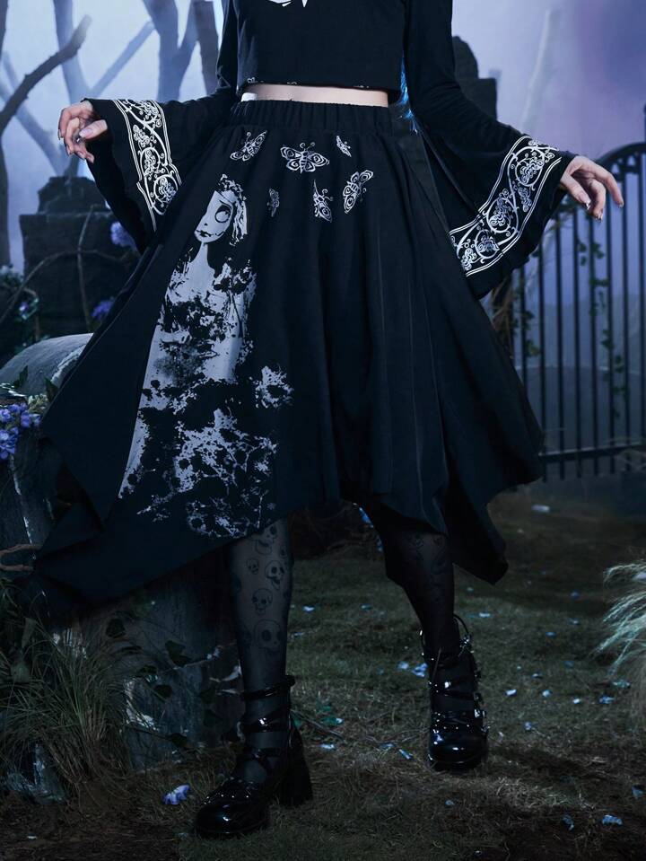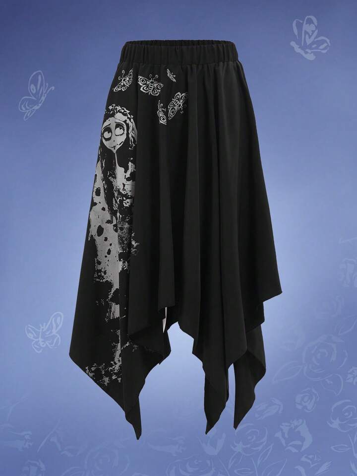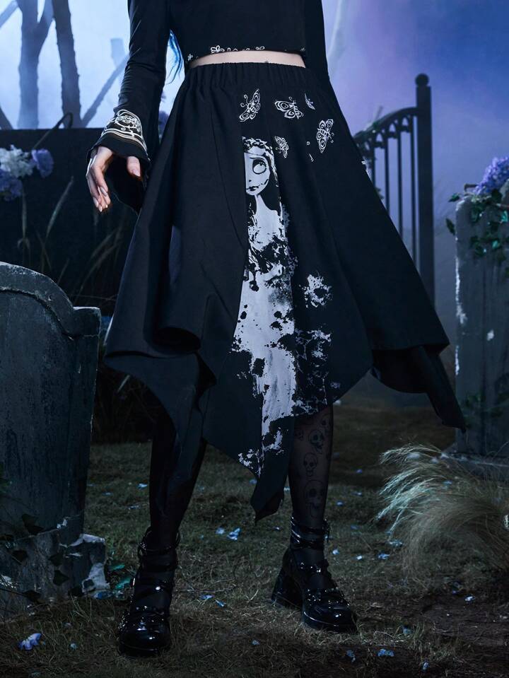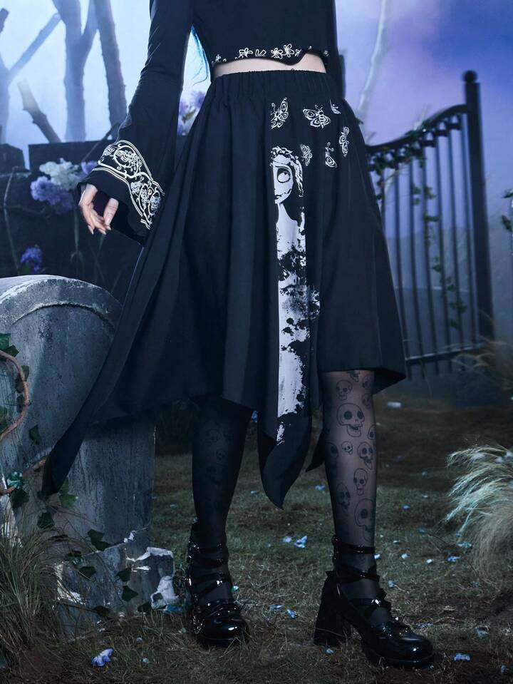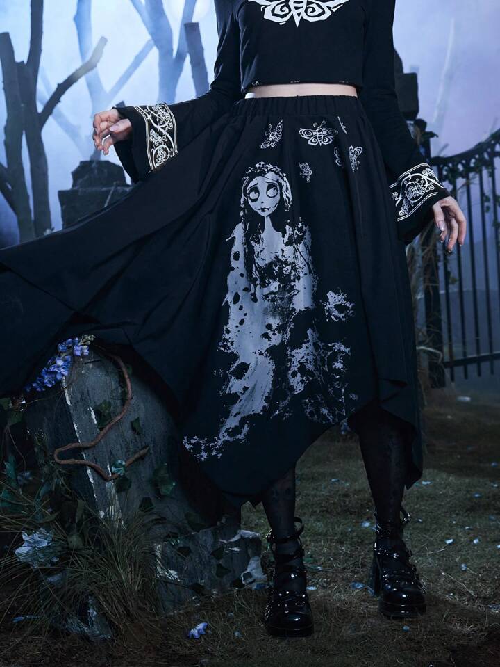 Corpse Bride | ROMWE Figure & Butterfly Graphic Asymmetrical Hem Skirt