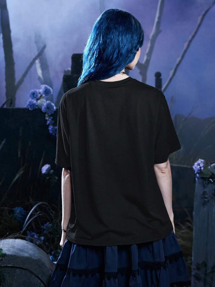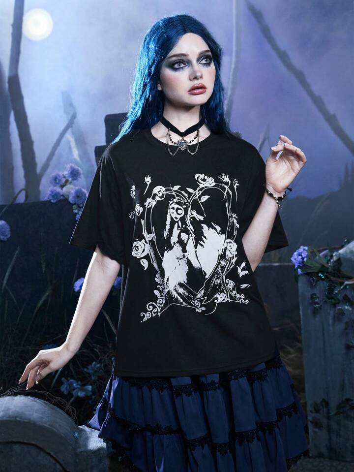 Corpse Bride | ROMWE Floral & Cartoon Figure Graphic Tee