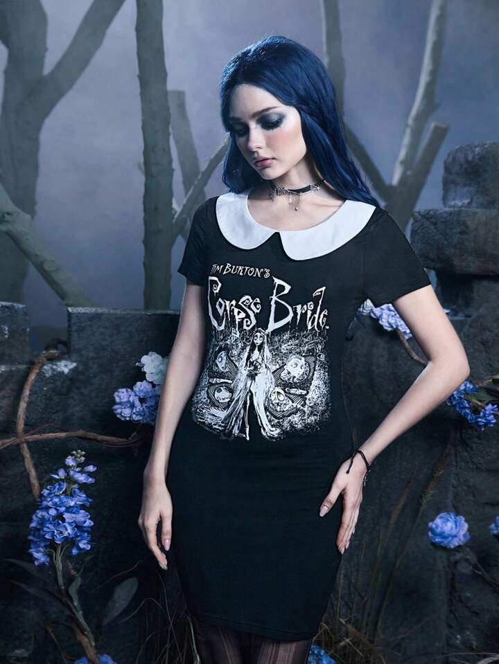 Corpse Bride | ROMWE Letter Graphic Contrast Collar Dress Gothic