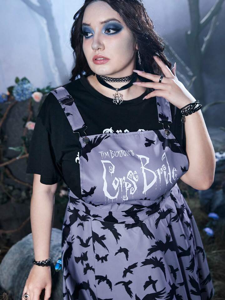 Corpse Bride | ROMWE Plus Bird & Letter Graphic Overall Dress Without Tee
