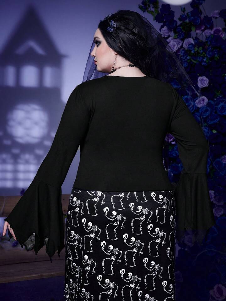 Corpse Bride | ROMWE Plus Cartoon Graphic Flounce Sleeve Tee