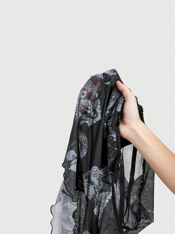 Corpse Bride | ROMWE Plus Figure Print Cold Shoulder Top