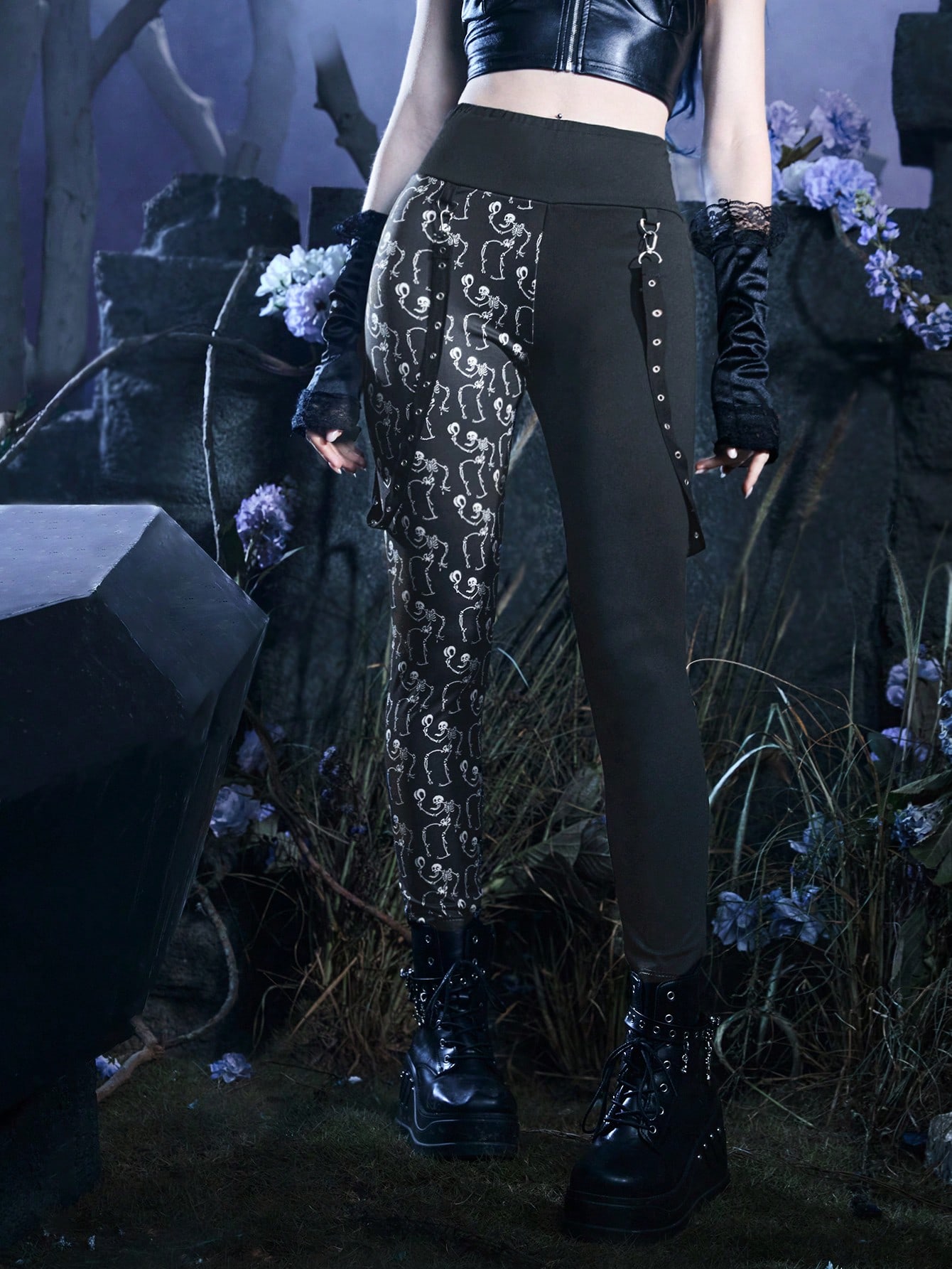 Corpse Bride | ROMWE Skeleton Print Contrast Straps Leggings