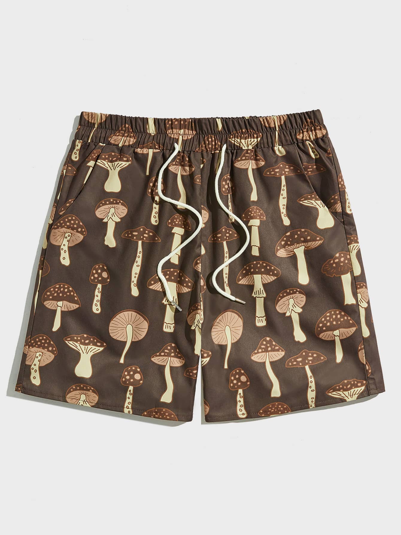 CourtneyGrabenShop Guys Mushroom Print Drawstring Waist Shorts