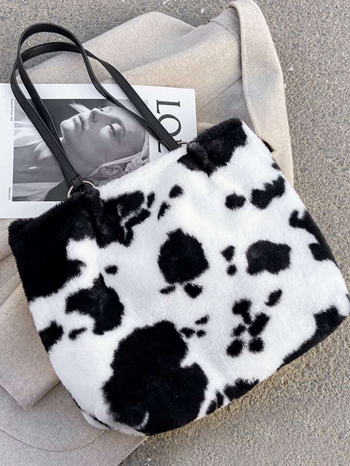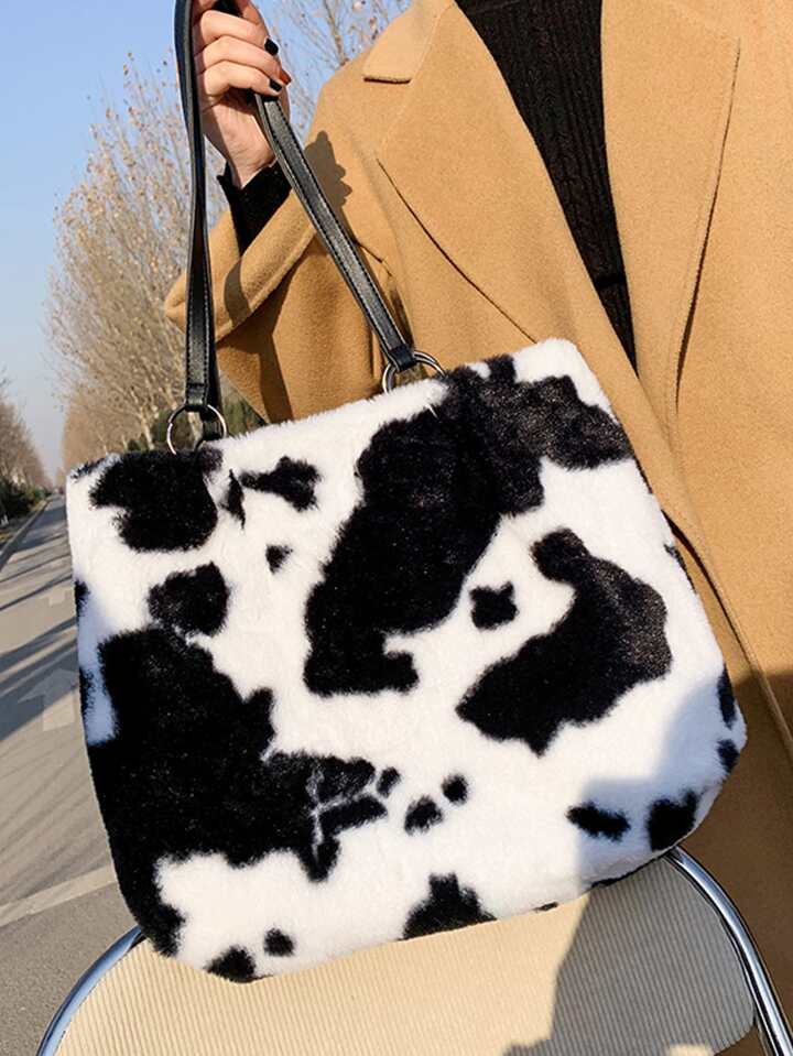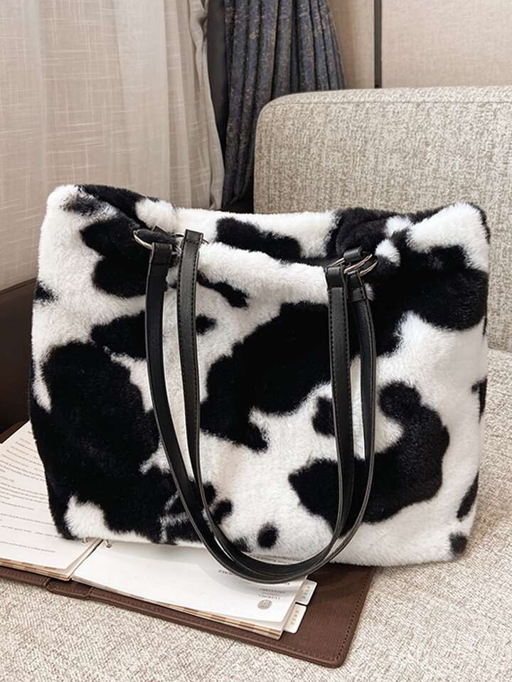 Cow Print Fluffy Tote Bag