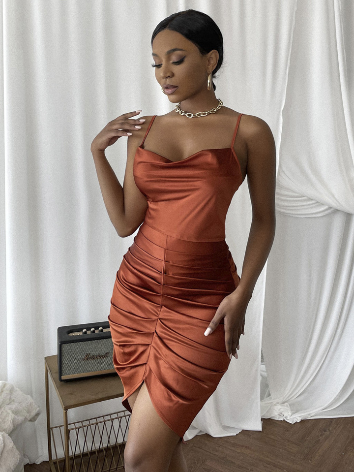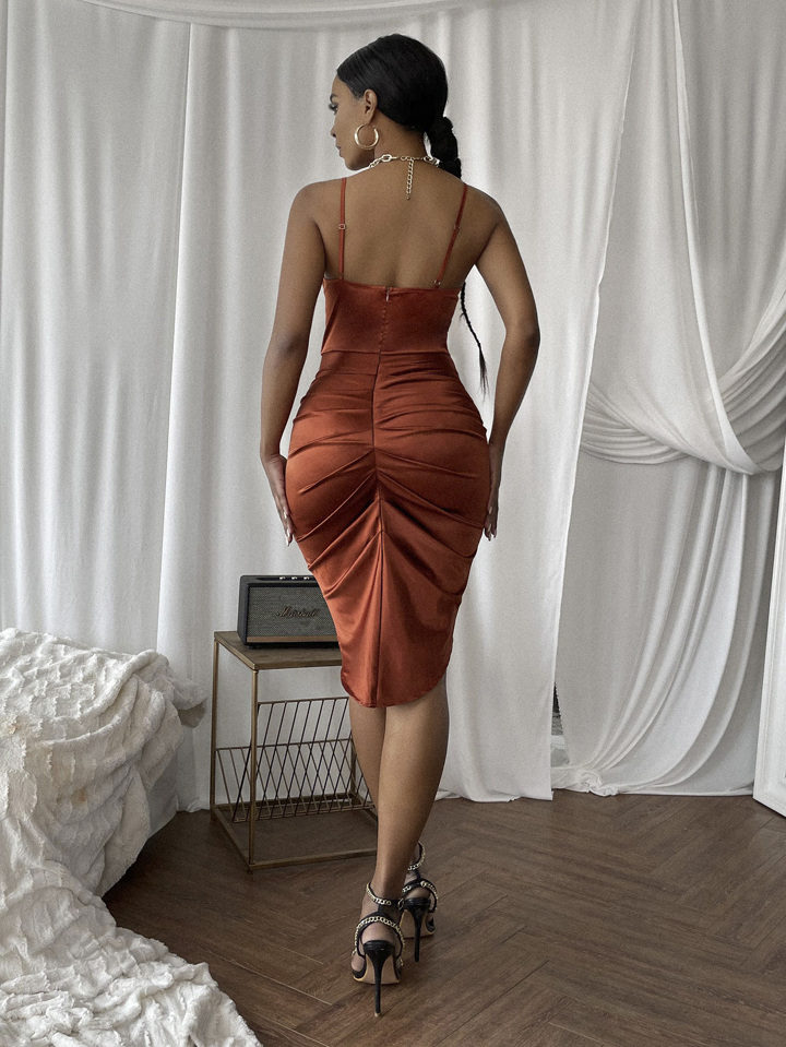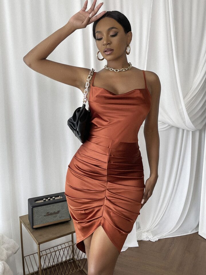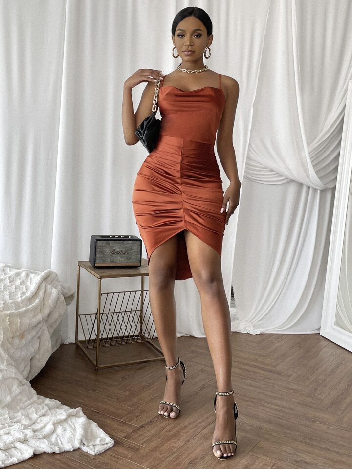 Cowl Neck Ruched Bodycon Dress