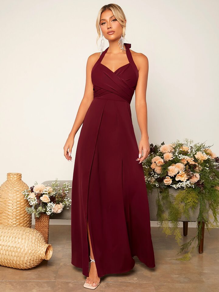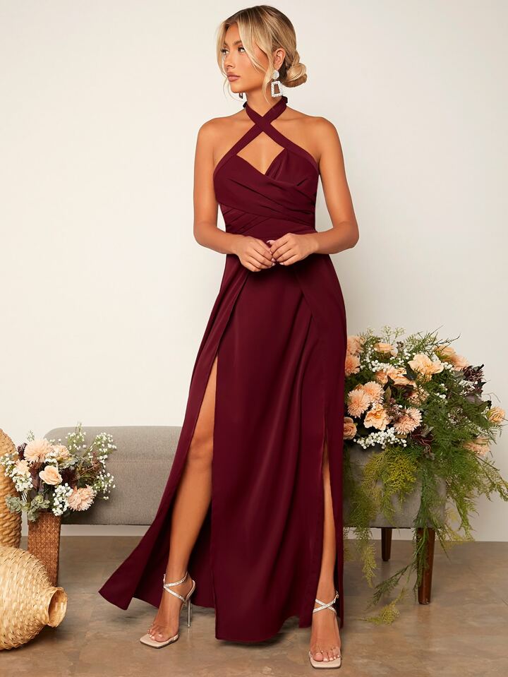 Criss Cross Tie Backless Wrap Hem Halter Bridesmaid Dress Elegant Dress
