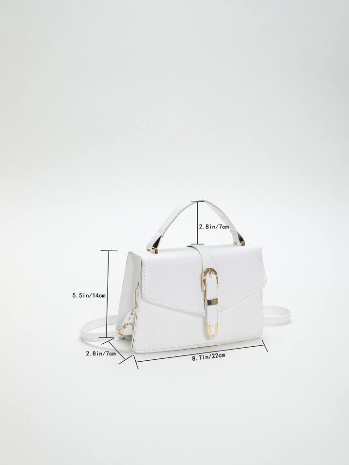 Crocodile Embossed Square Bag Buckle Decor Small