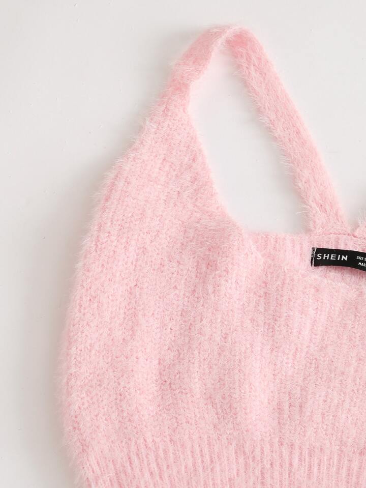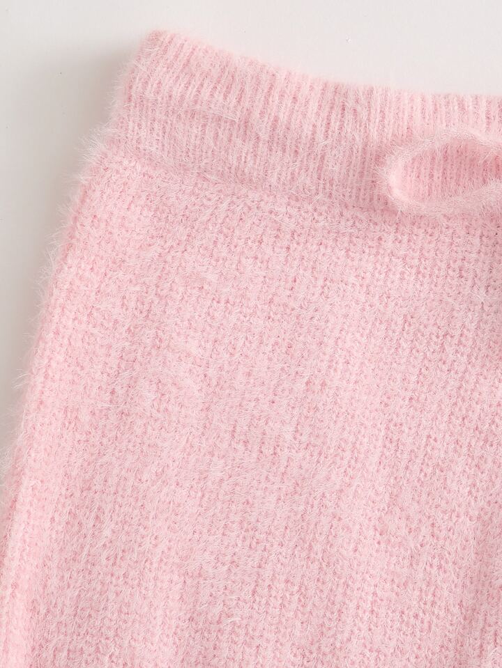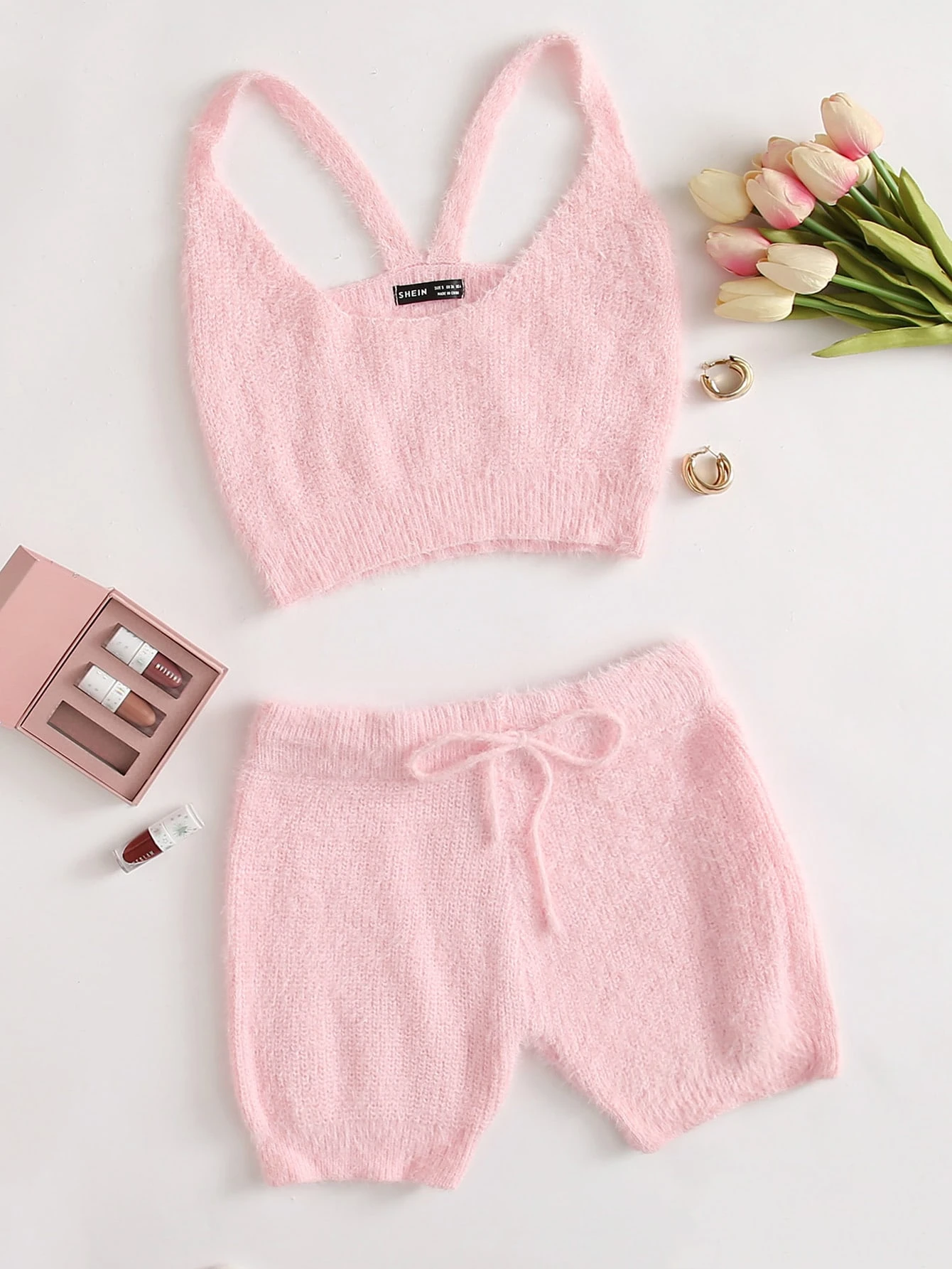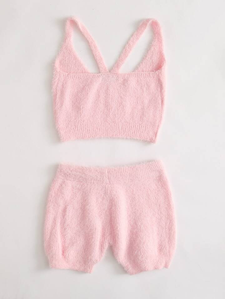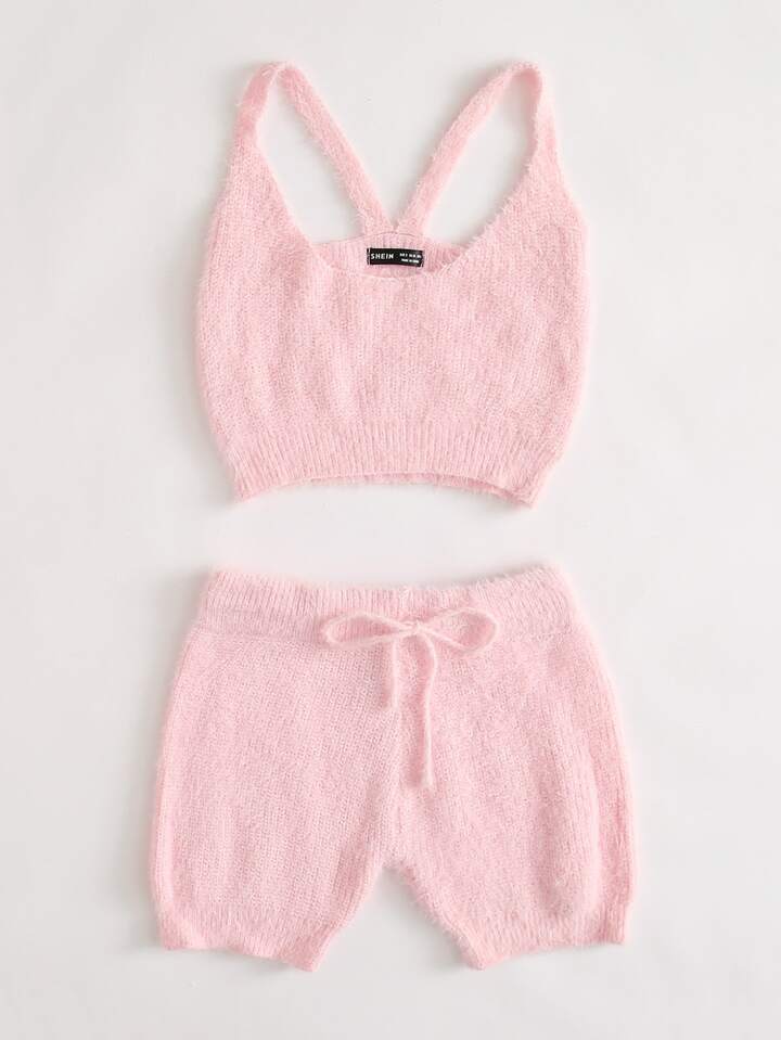 Crop Fuzzy Knit Top & Tie Waist Shorts Set