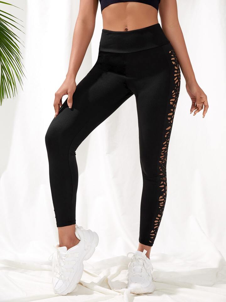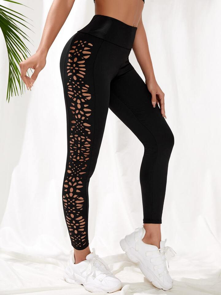 Cropped Yoga Leggings Seamless Laser Cut Wide Waistband Gym Tights