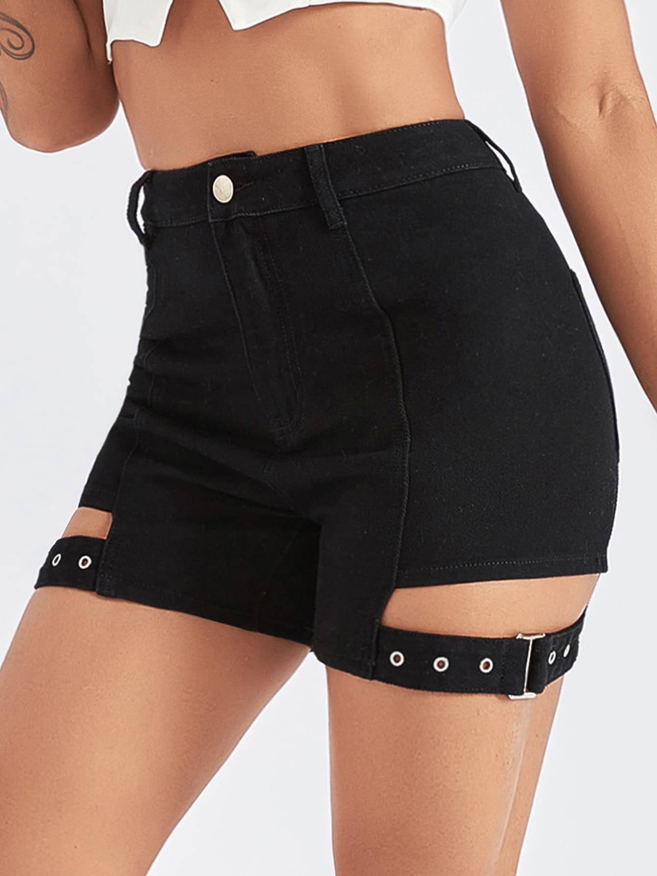 Cut Out Buckle Denim Shorts