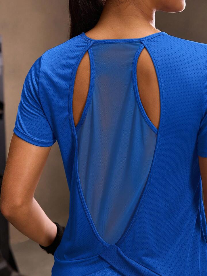Cut Out Crossover Back Sports Tee Gym Women Shirts