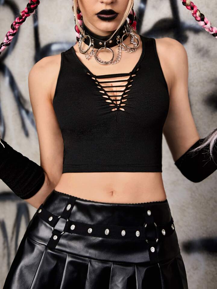 Cut Out Front Crop Tank Top Without Arm Sleeves