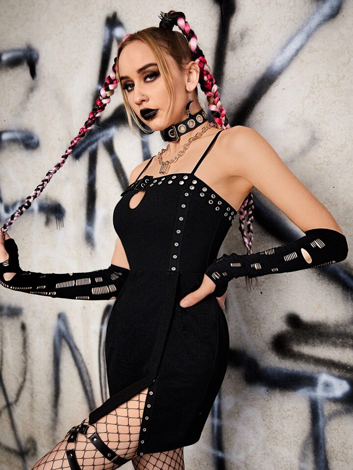 Cut Out Grommet Eyelet Detail Cami Dress Without Gloves