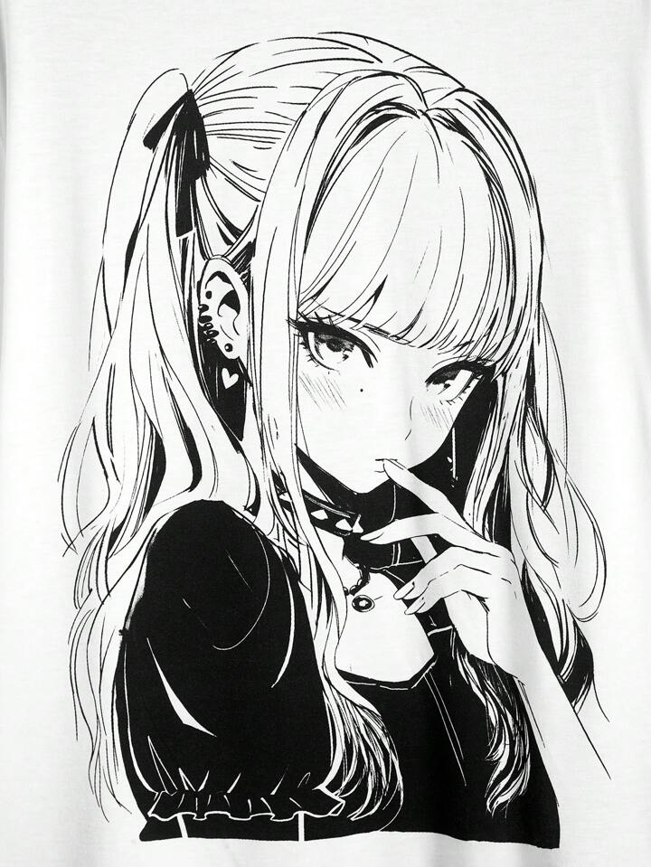 Cute Anime Girl Print Casual Women' Loose Short Sleeve T-Shirt, School
