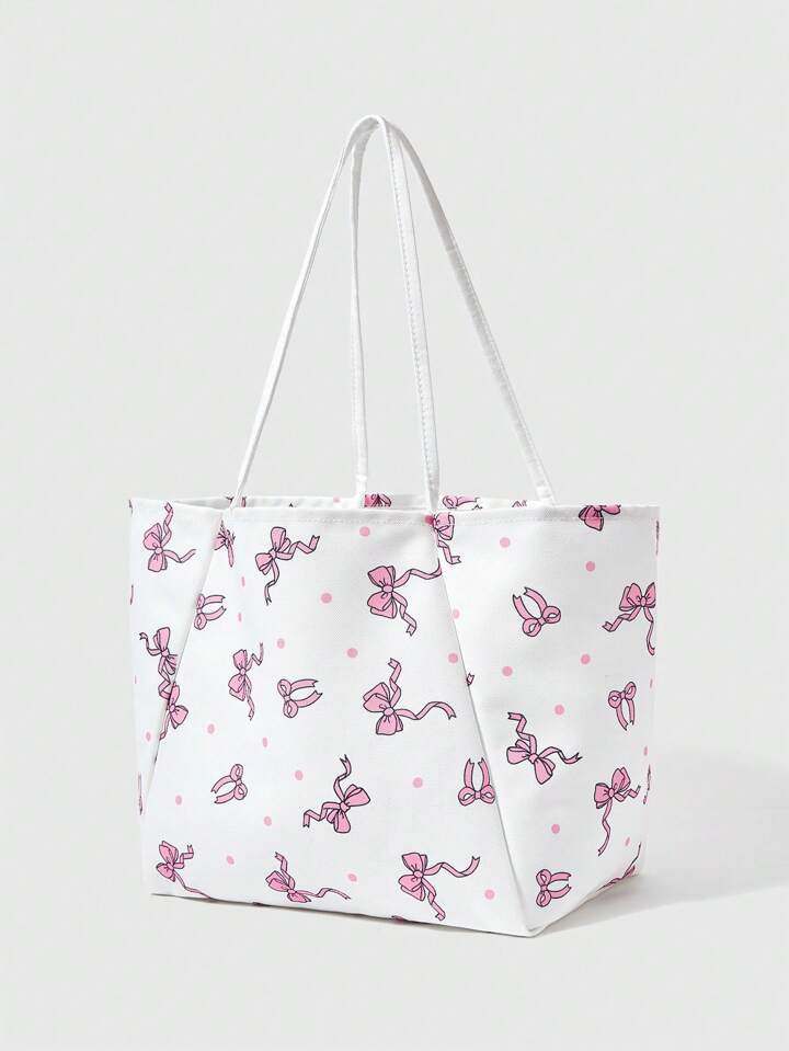 Cute Bow Decor Women's Tote Bag, Practical & Multi-Functional, Minimalist Design, Cute Bow Bag For Women