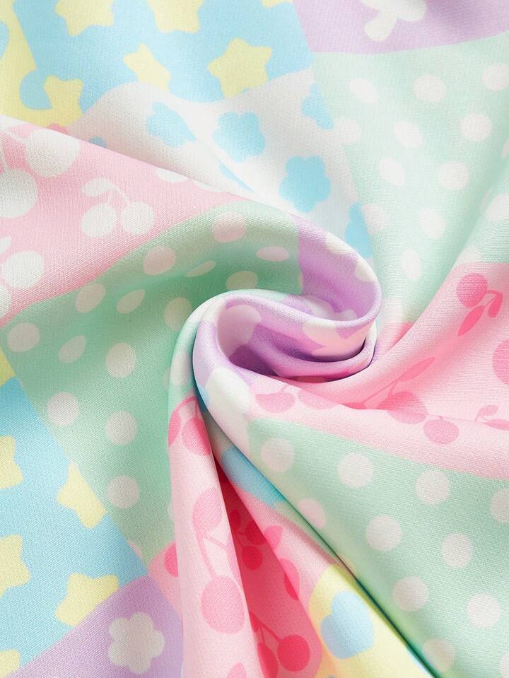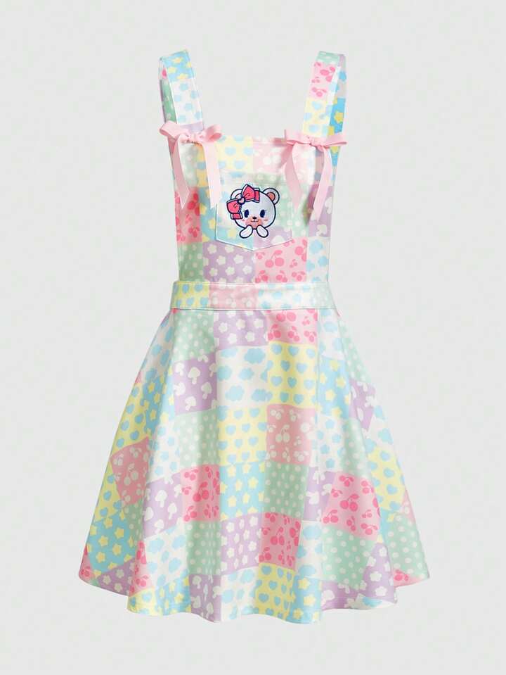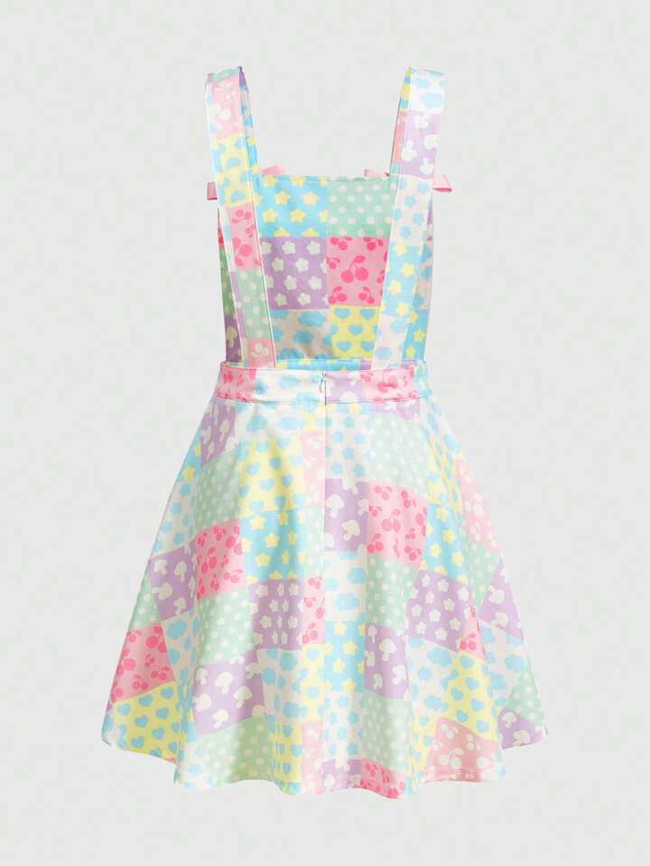Kawaii Cute Casual Patchwork Printed Overall Dress