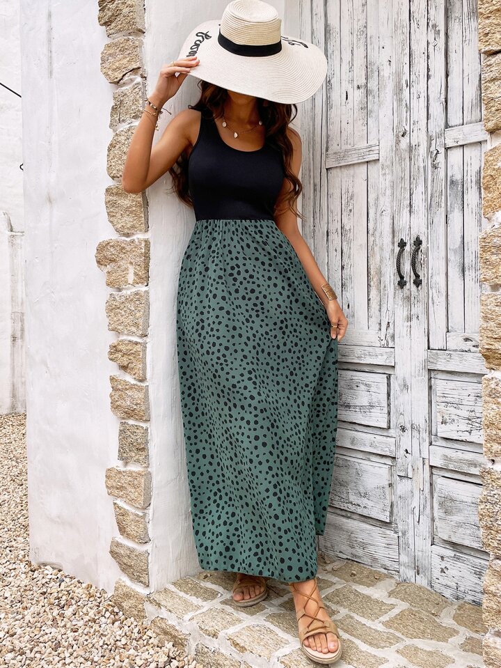 Dalmatian Print Sleeveless Dress Maxi Vacation Beach Outfits Women