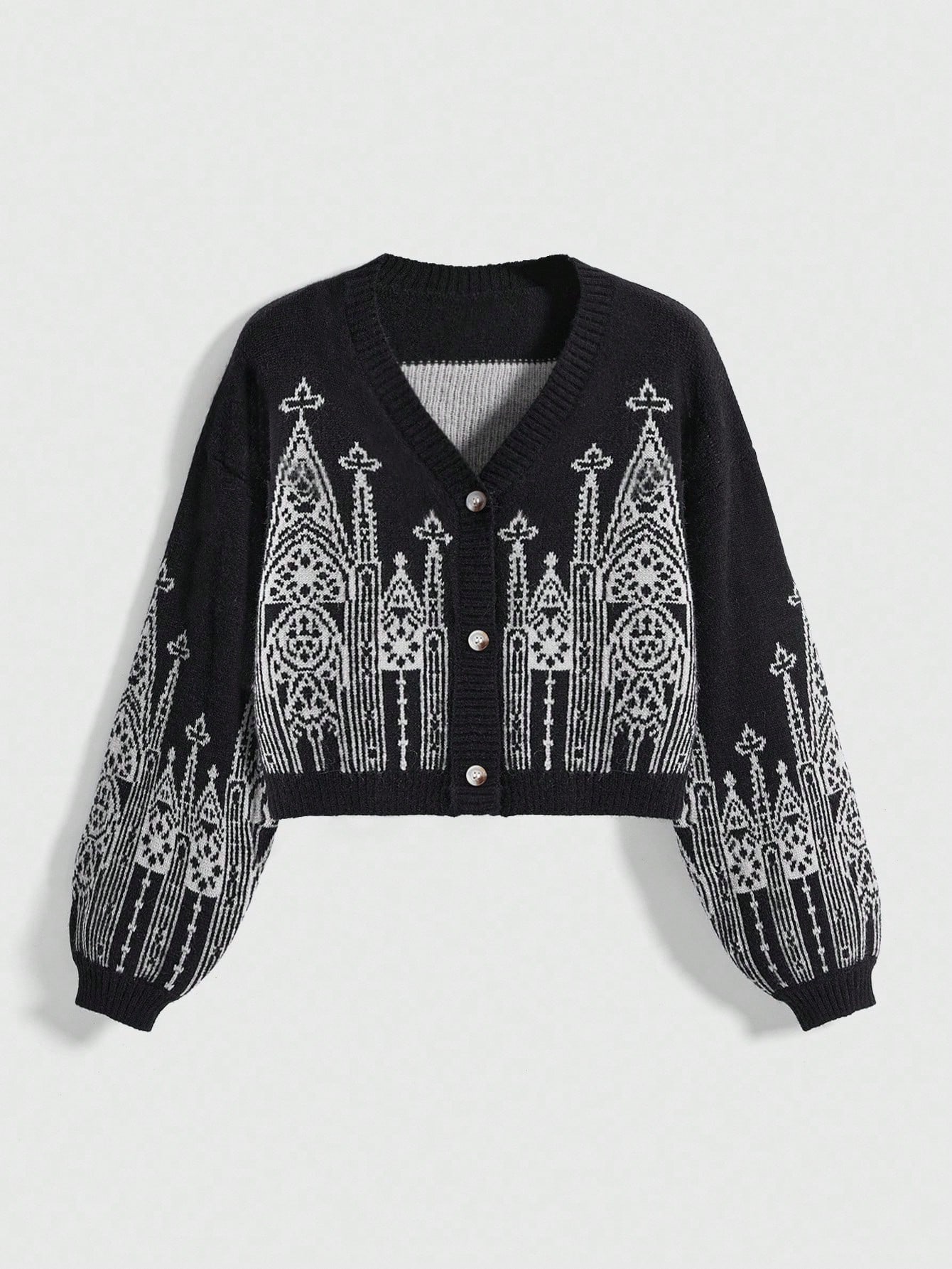 Goth Dark Gothic Church Jacquard Loose Short Cardigan For Women