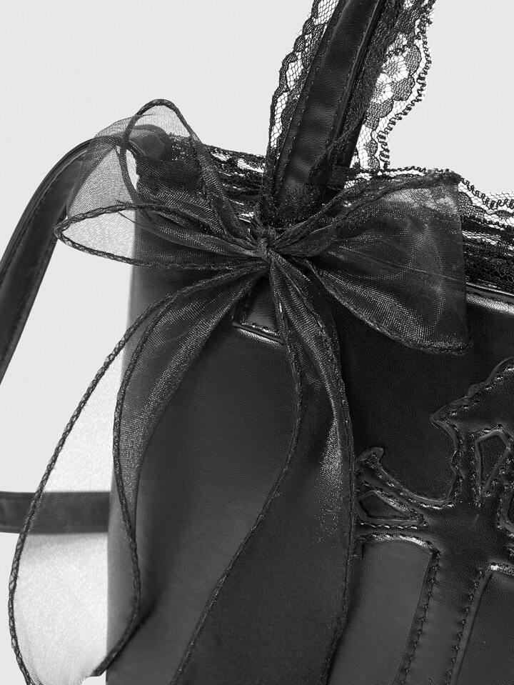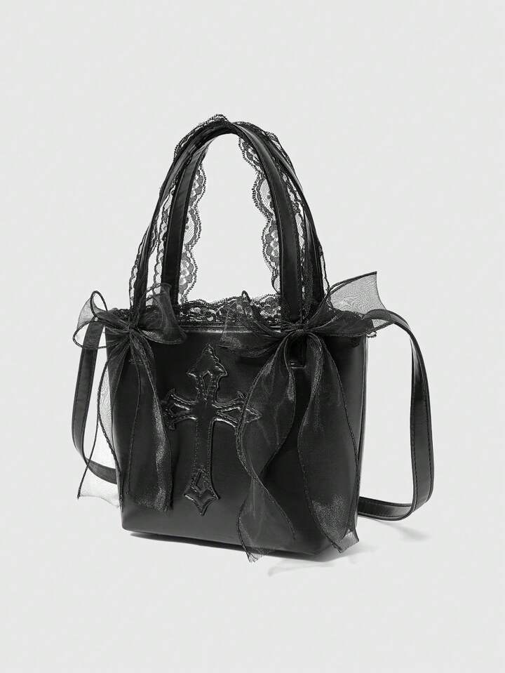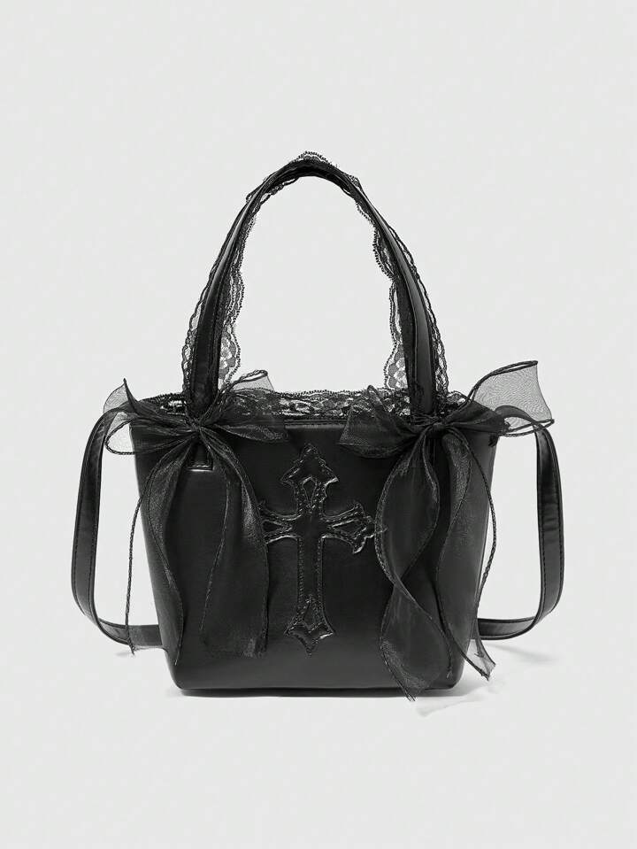Dark Gothic Cross Pattern Portable Storage Tote Bag For Women, Halloween
