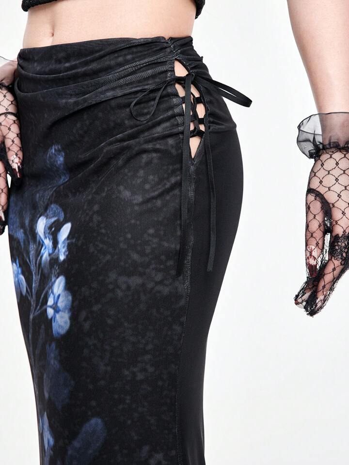 Dark Gothic Mysterious Plant & Herbs Printed Mermaid Fishnet Skirt