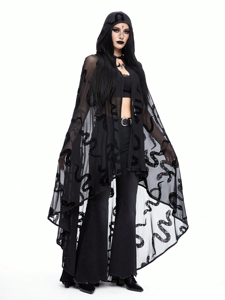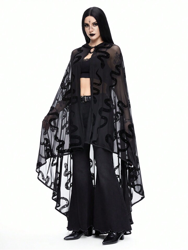 Dark Gothic Snake Jacquard Flocked Women's Mesh Cape Top