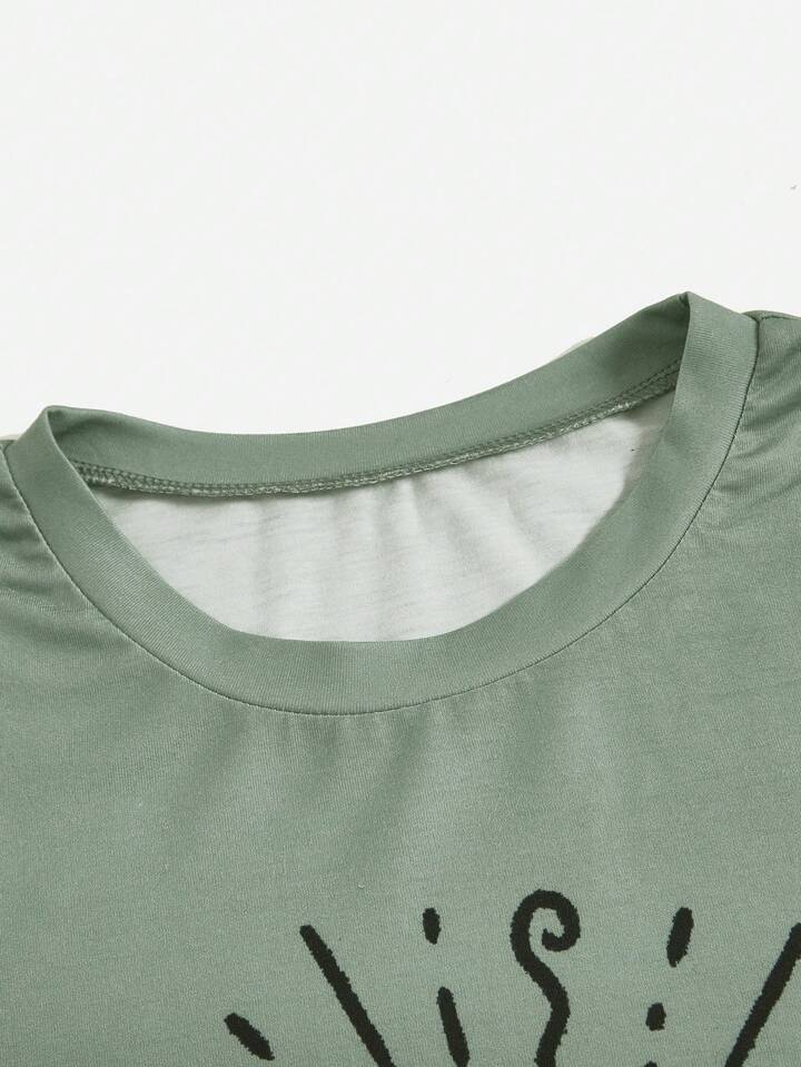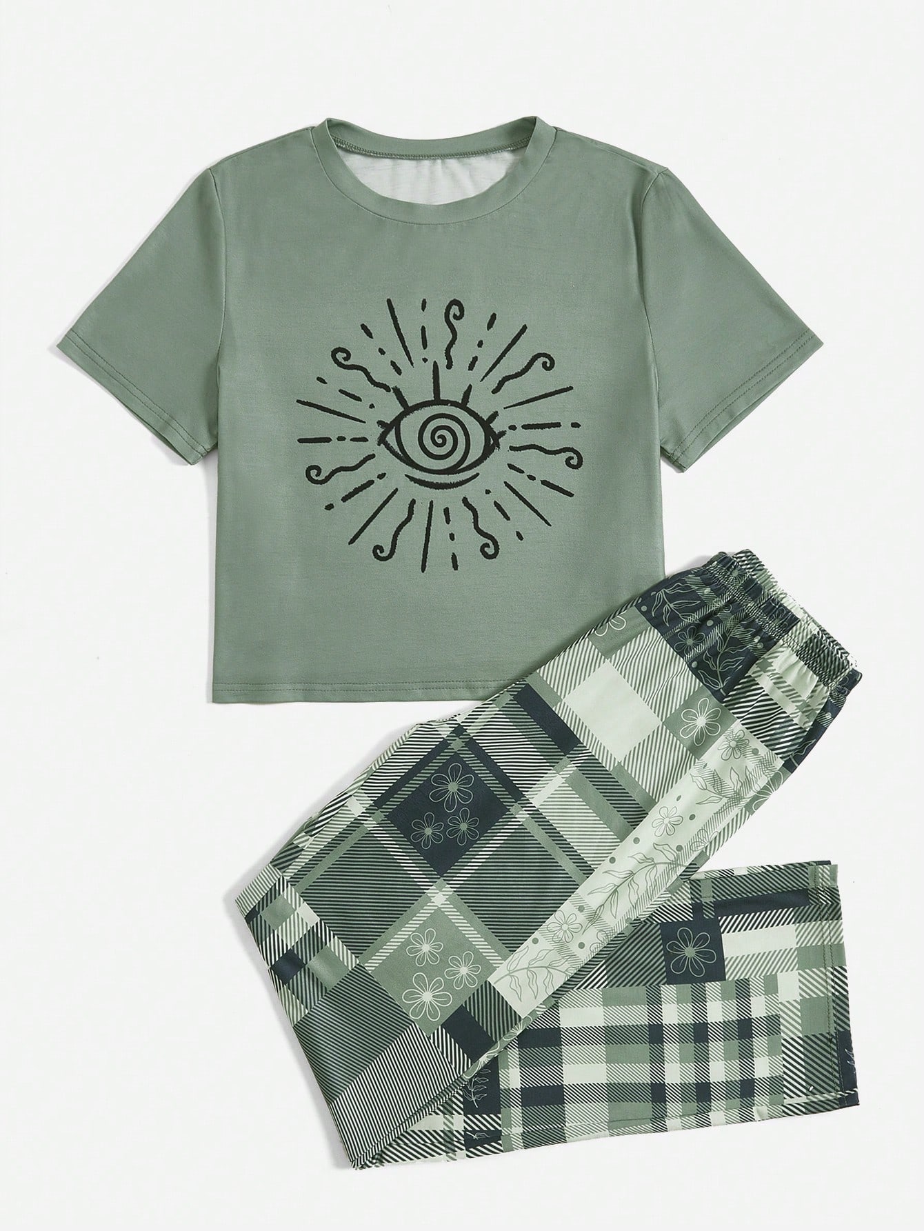 Delively Dewi Eyeball Print T-shirt And Plaid Pants Pajamas Set
