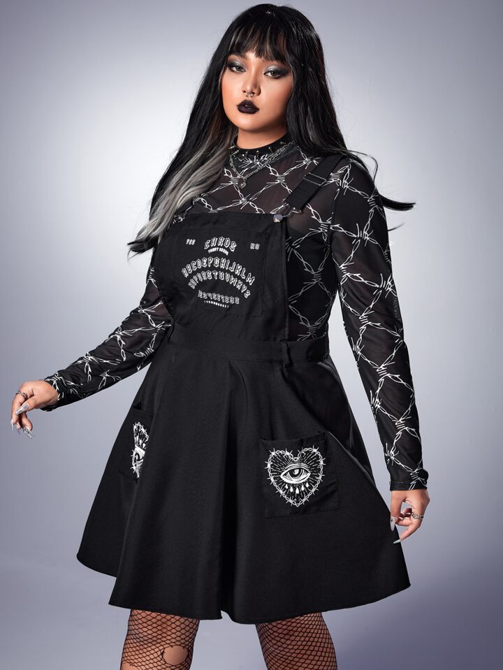 Deniart Goth Plus Letter Graphic Overall Dress Without Top