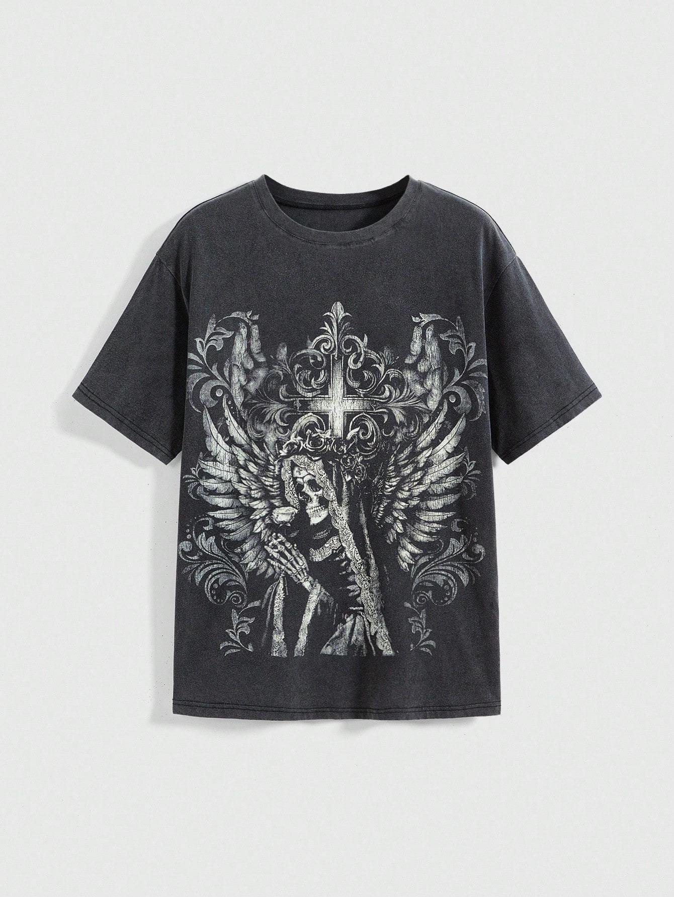 Grunge Punk Distressed Washed Fluffy Fabric Funny Cat Print Loose Women T-Shirt, Halloween