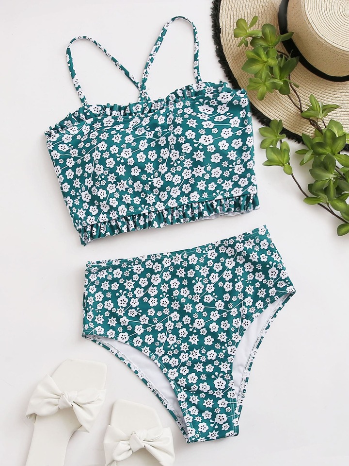 Ditsy Floral Frill High Waist Bikini Set Summer Beach