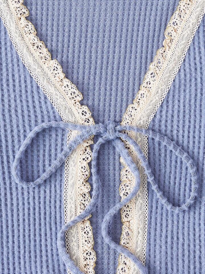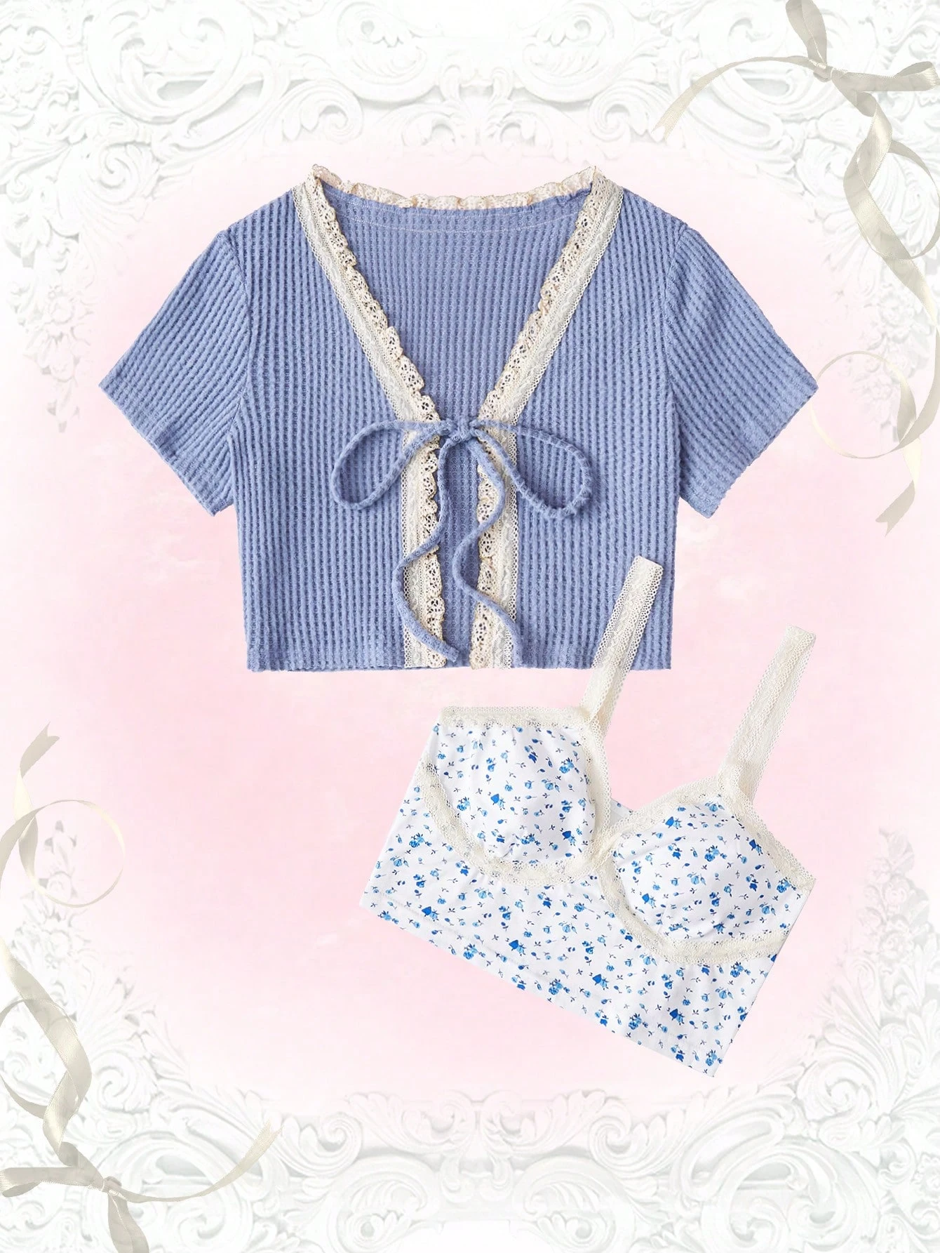Ditsy Floral Lace Trim Cami Top & Tie Front Crop Top