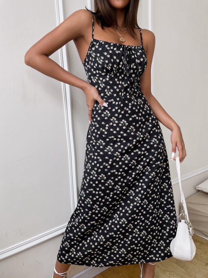 Ditsy Floral Print Tie Front Cami Dress