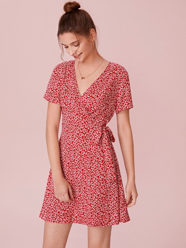 Ditsy Floral Surplice Dress