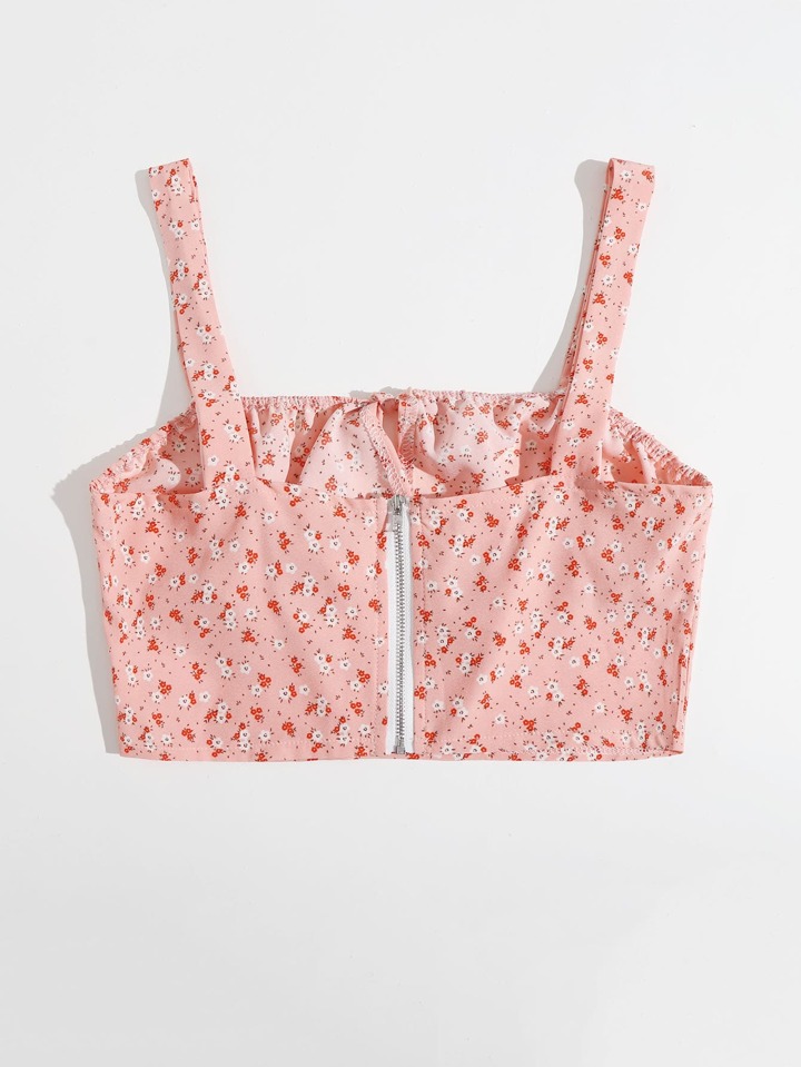 Ditsy Floral Tie Front Zip Up Crop Cami