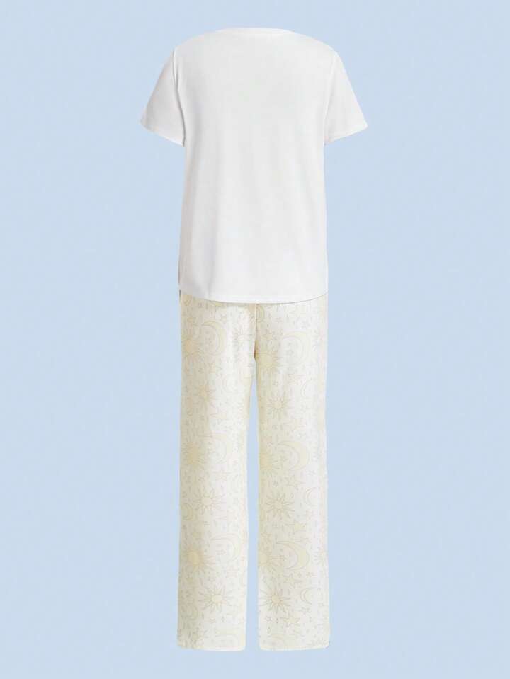 DoodlebyMeg Sun & Moon Print Tee & Pants PJ Set