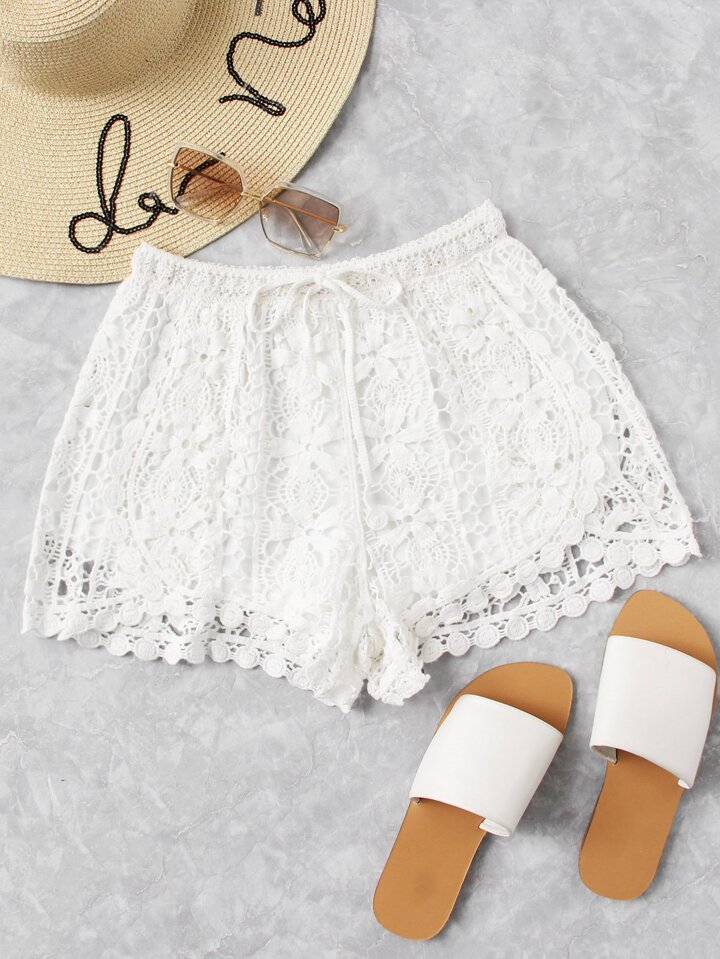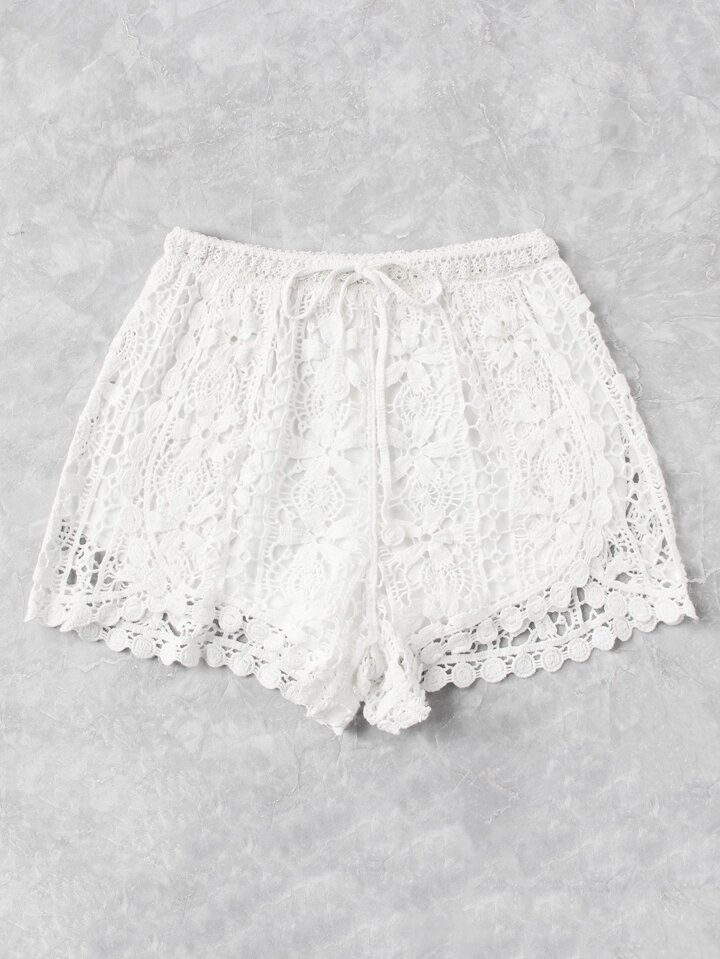 Drawstring Waist Crochet Shorts