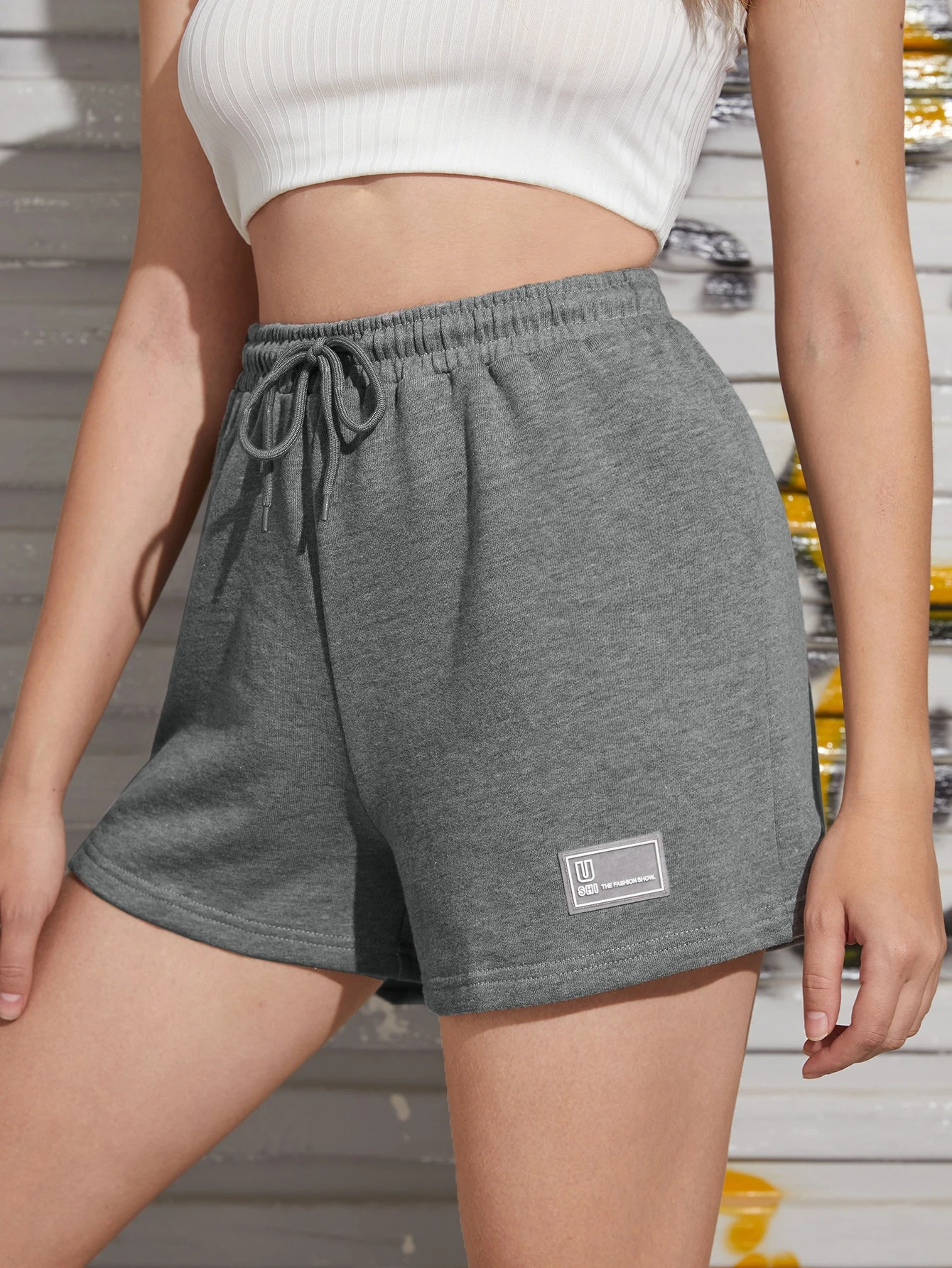 Drawstring Waist Patched Detail Shorts