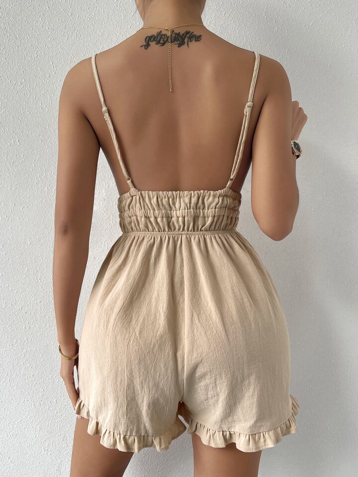 Drawstring Waist Ruffle Hem Backless Cami Romper