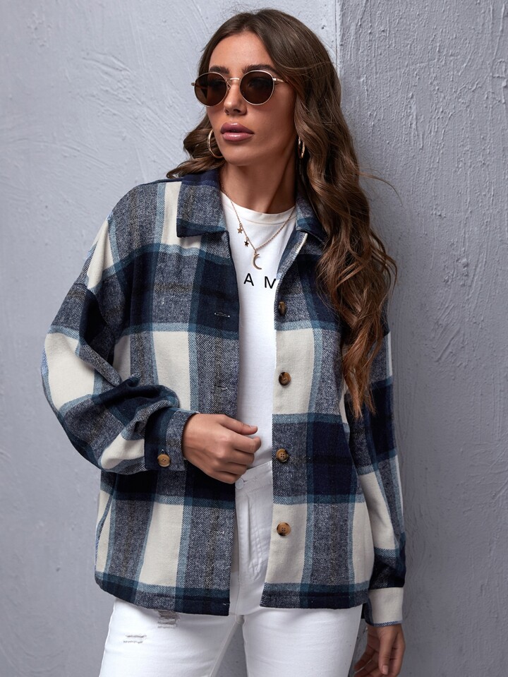 Drop Shoulder Buffalo Plaid Coat
