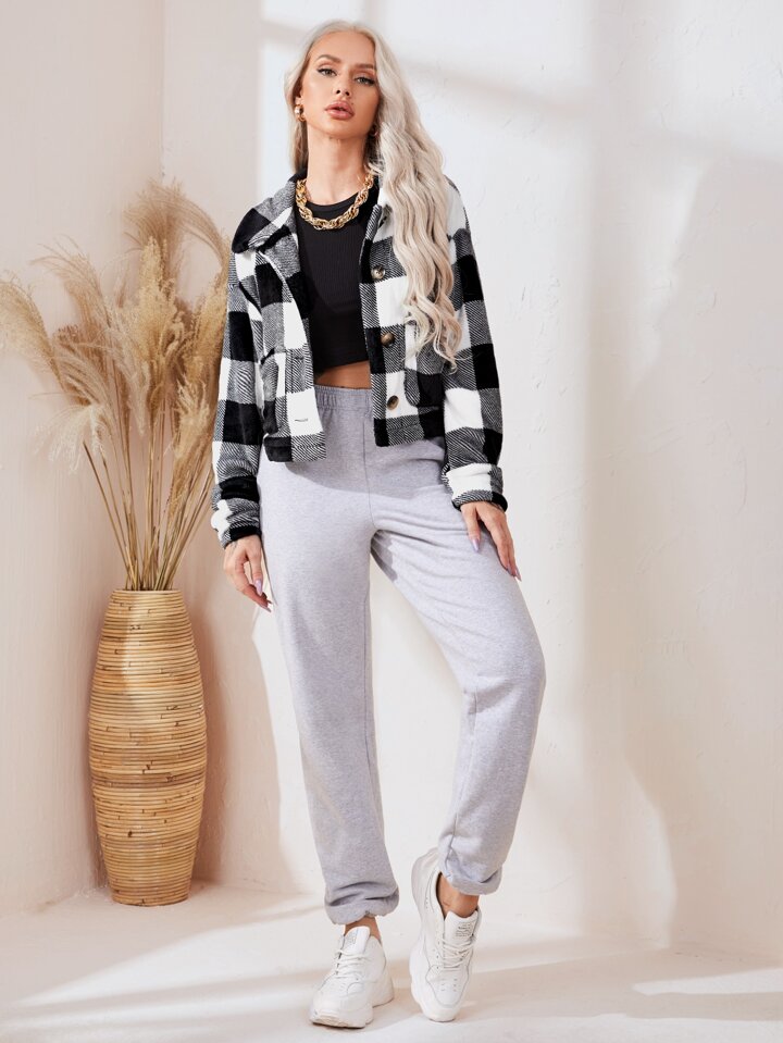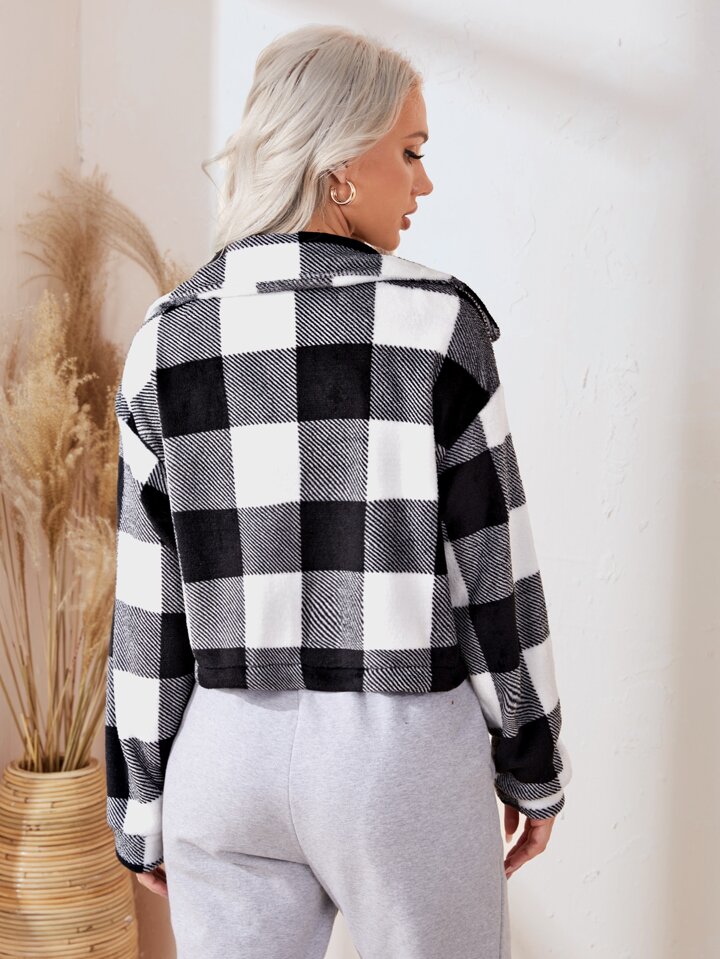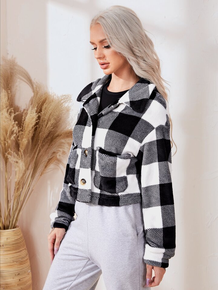 Drop Shoulder Buffalo Plaid Flannel Jacket