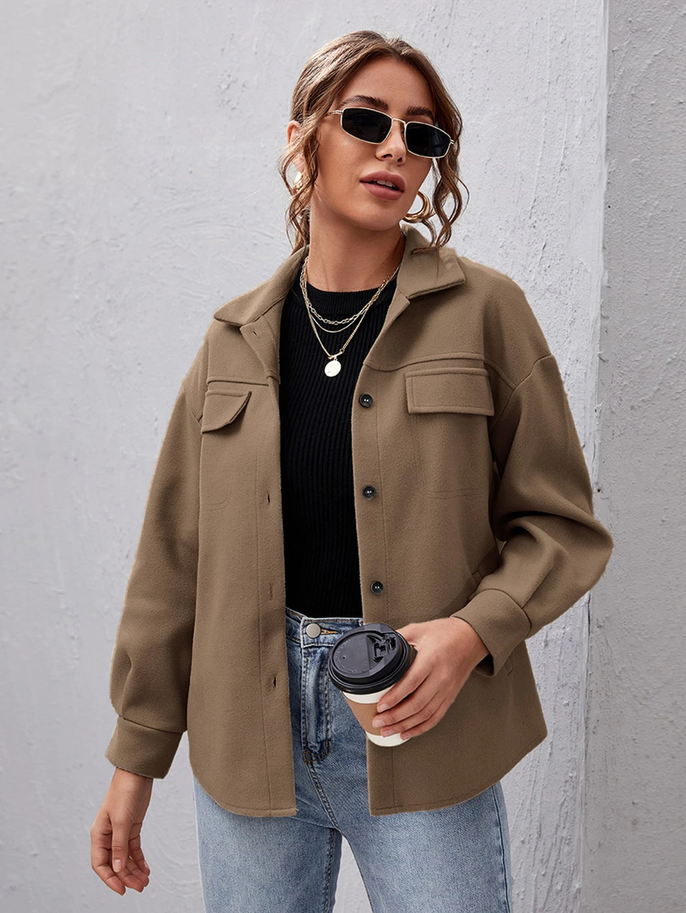 Drop Shoulder Buttoned Overcoat