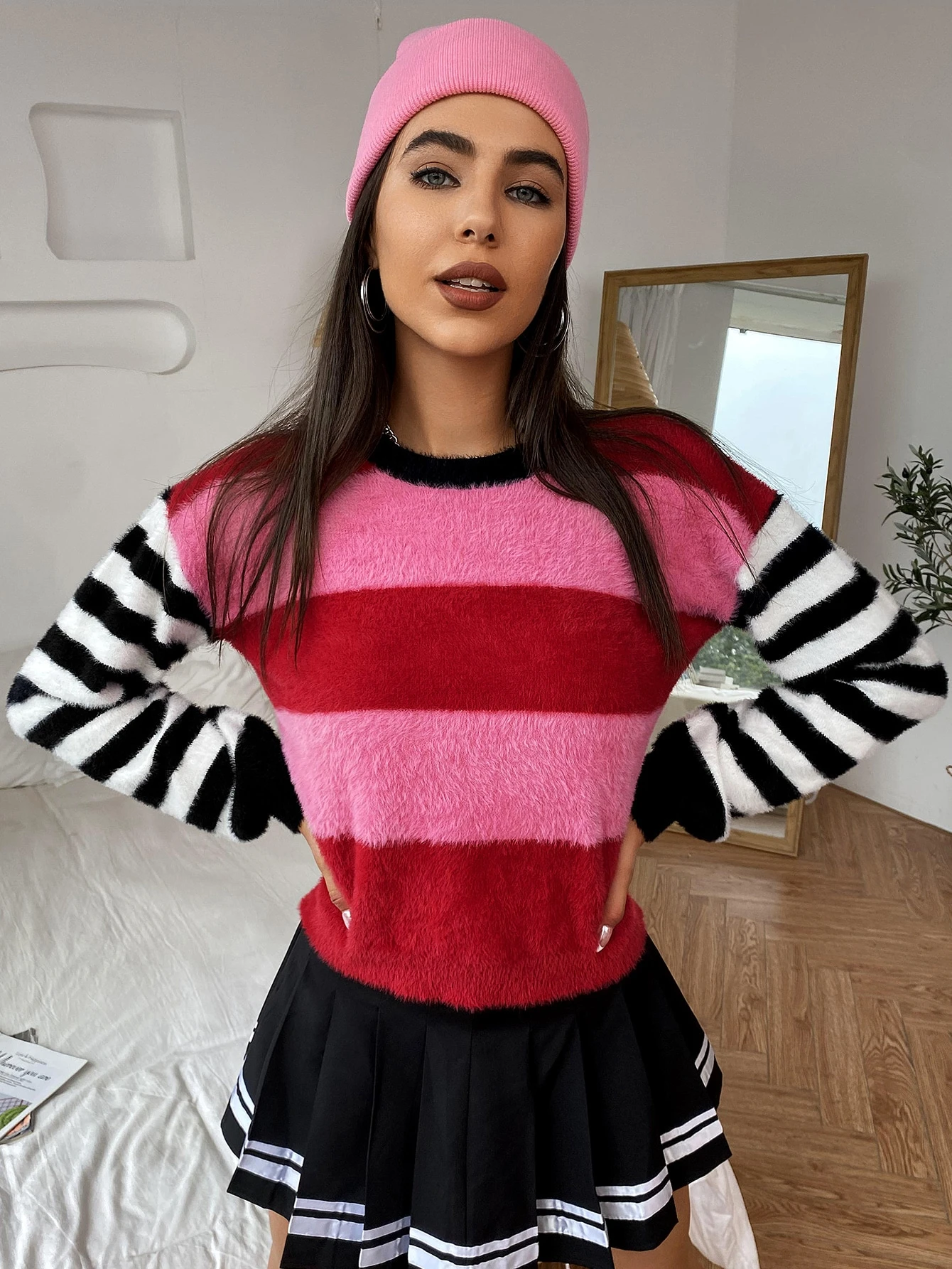 Drop Shoulder Striped Colorblock Sweater