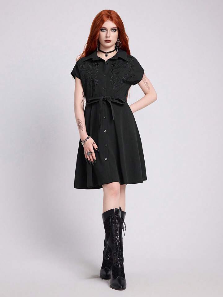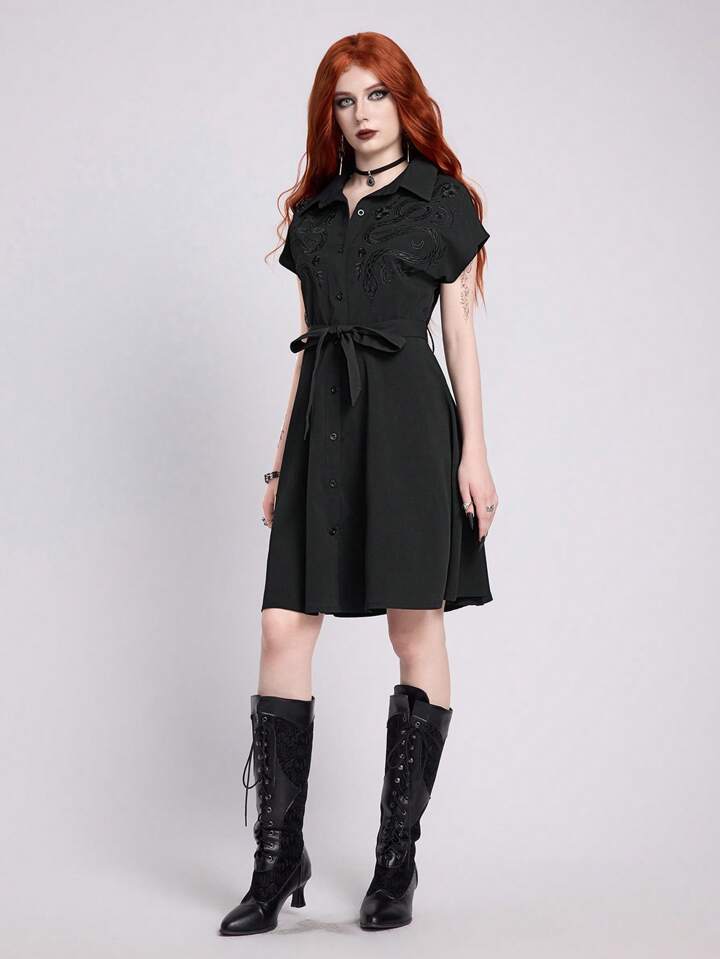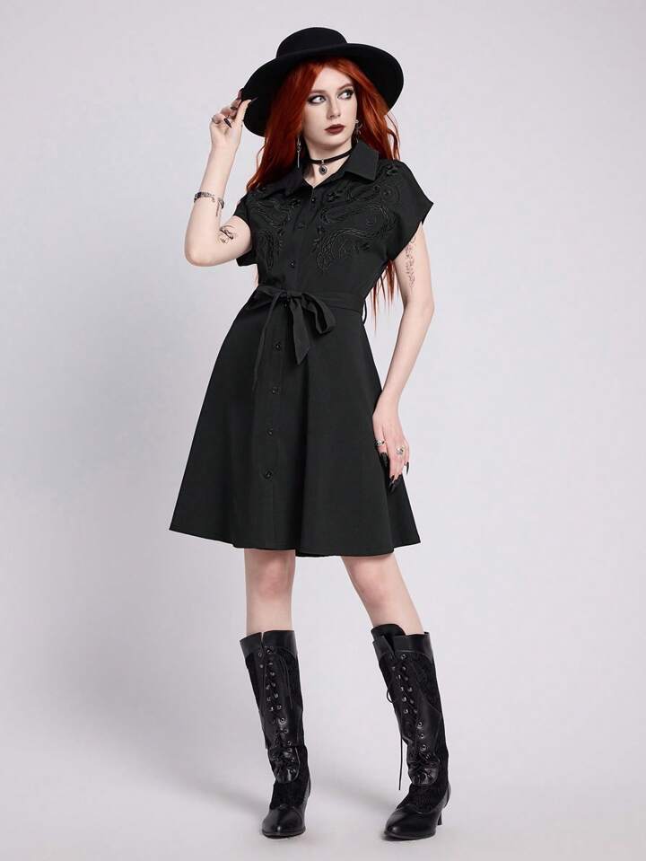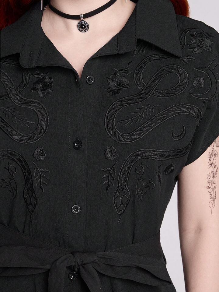 EDITION Gothic Style Snake Skin, Floral & Moon Embroidered Women's Dress